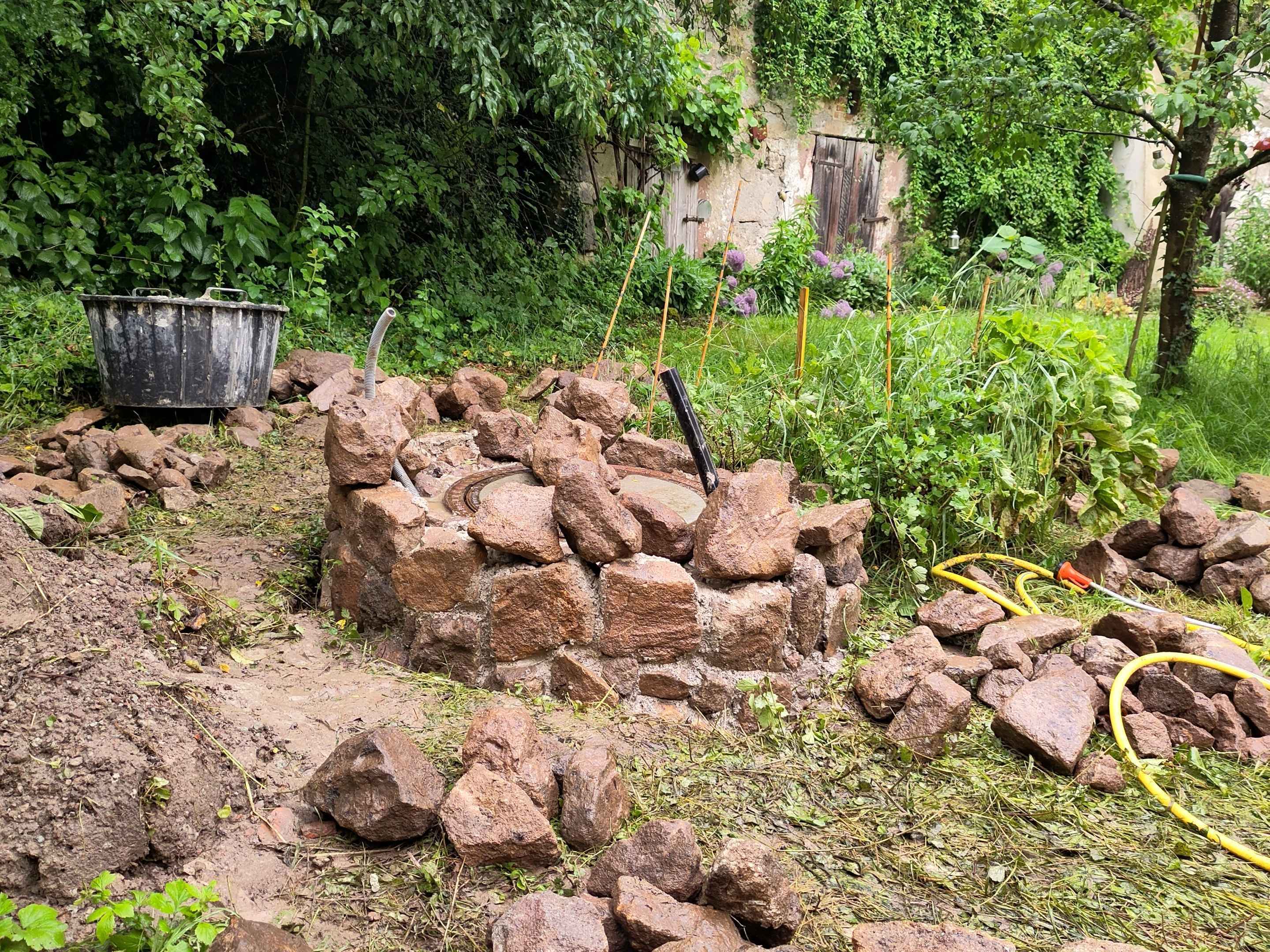 Aus Findlingen vom Feldrand habe ich diese dekorative Brunnenumrandung für einen Brunnen im Garten gemauert.
