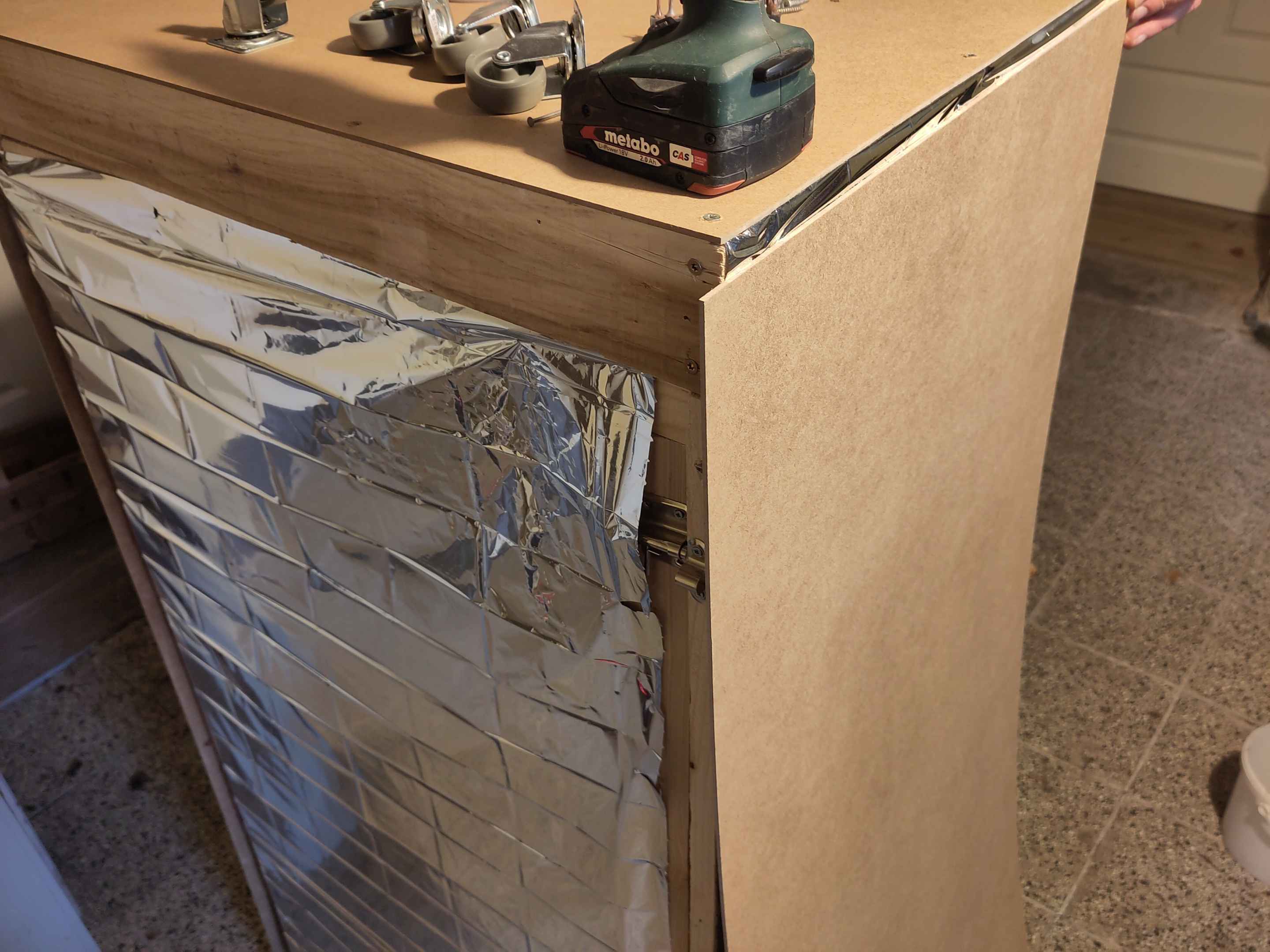 Die Außenwände haben wir anschließend noch mit Spannplatten verkleidet. Somit ist die Folie geschützt und die Growbox sieht besser aus.