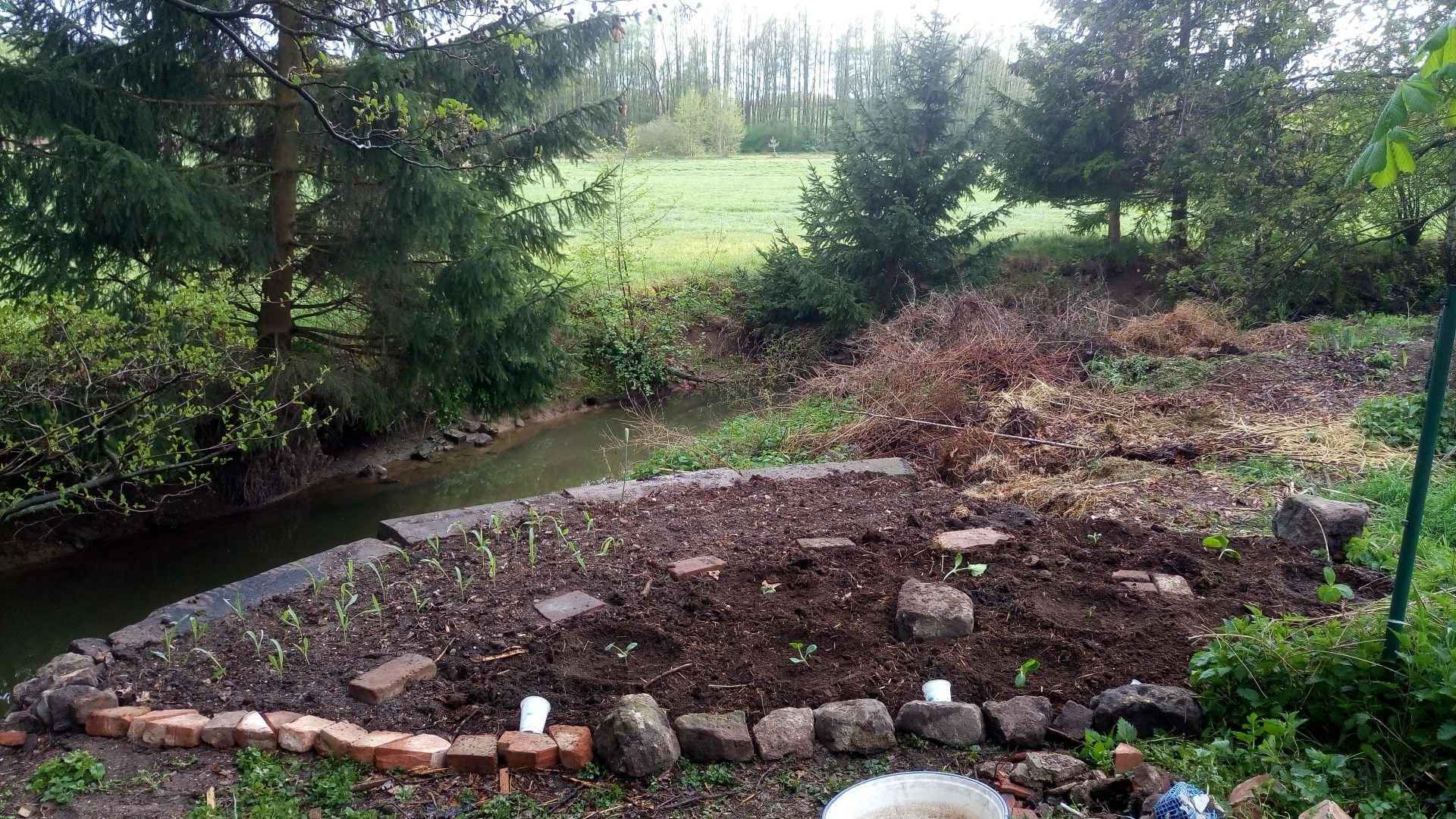Nachdem der Haufen immer größer wurde, habe ich beschlossen, nun aus diesen an einer Böschung ein Hochbeet anzulegen.