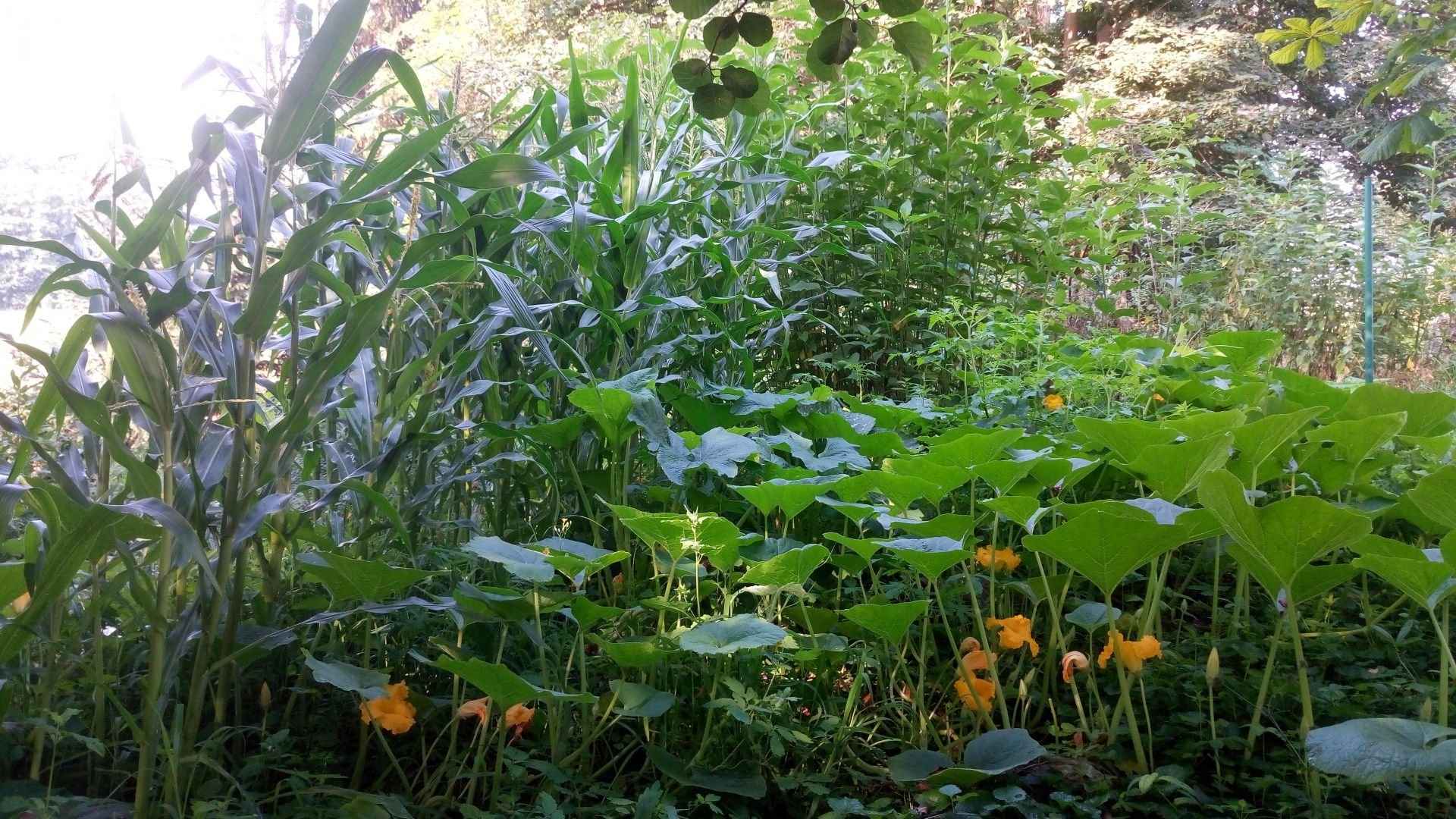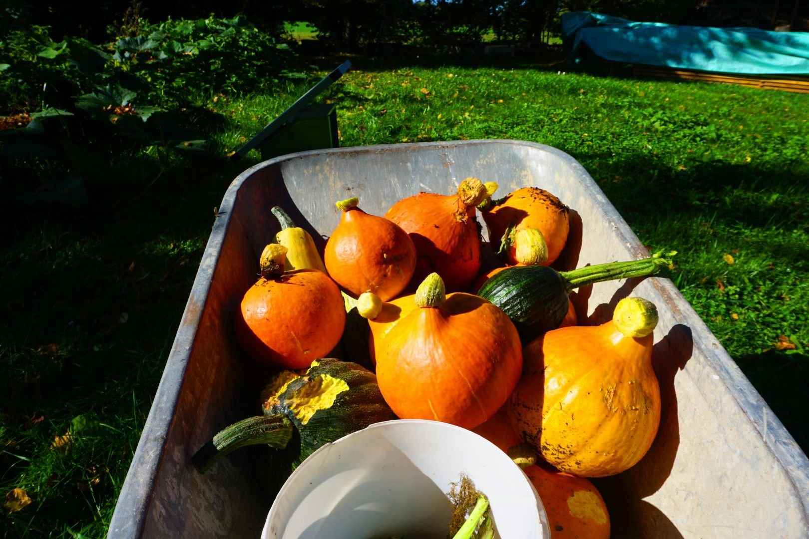 Die Pflanzen wuchsen ganz gut, leider wurde der Mais von Enten und Bisamratten gefressen, dafür viel die Kürbisernte umso besser aus.