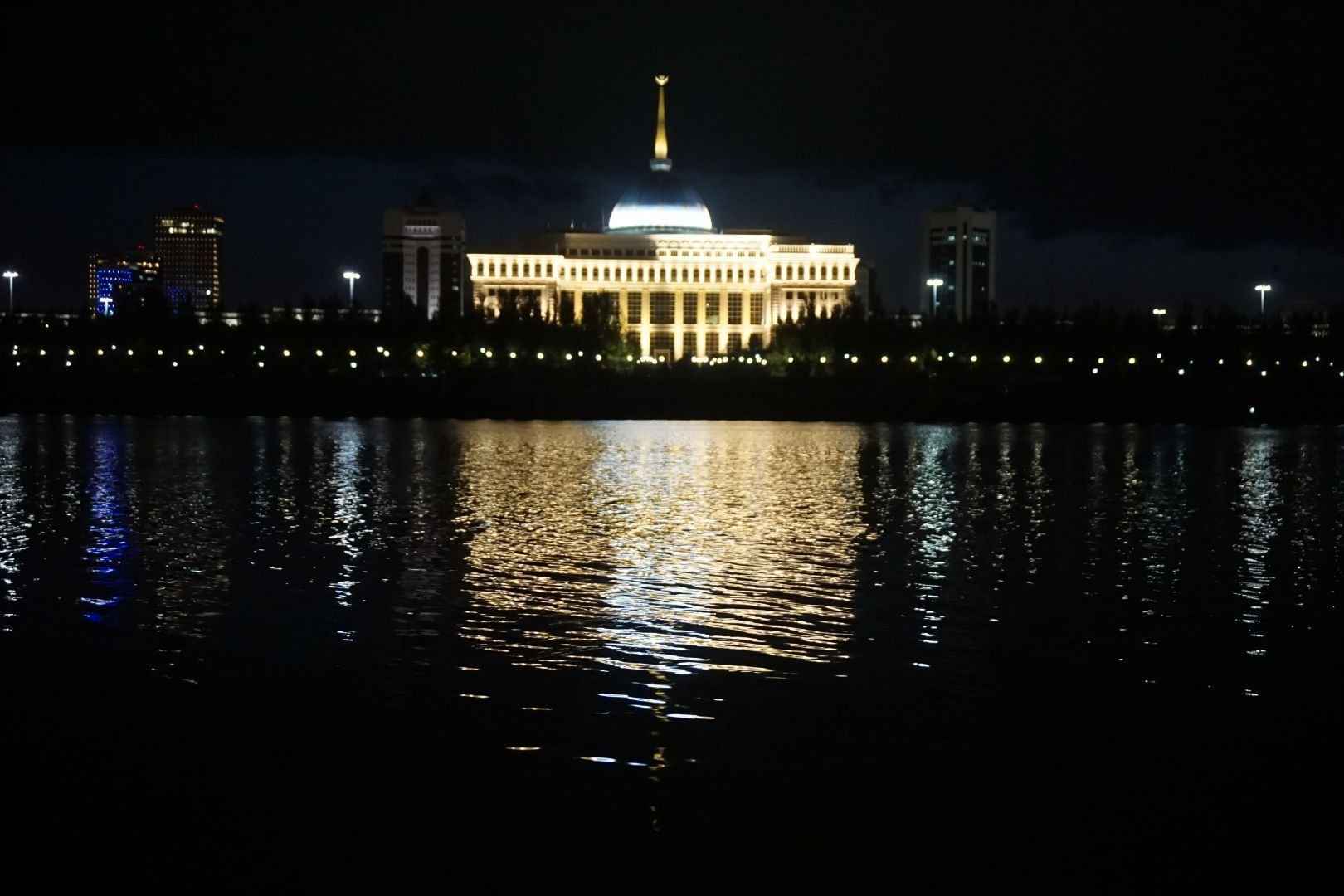 Der Präsidentenpalast bei Nacht mit seiner Spiegelung im Wasser war ein besonderes Highlight. Der Palast ist ein beeindruckendes Beispiel für moderne Architektur und beherbergt die Regierungsbehörden des Landes.