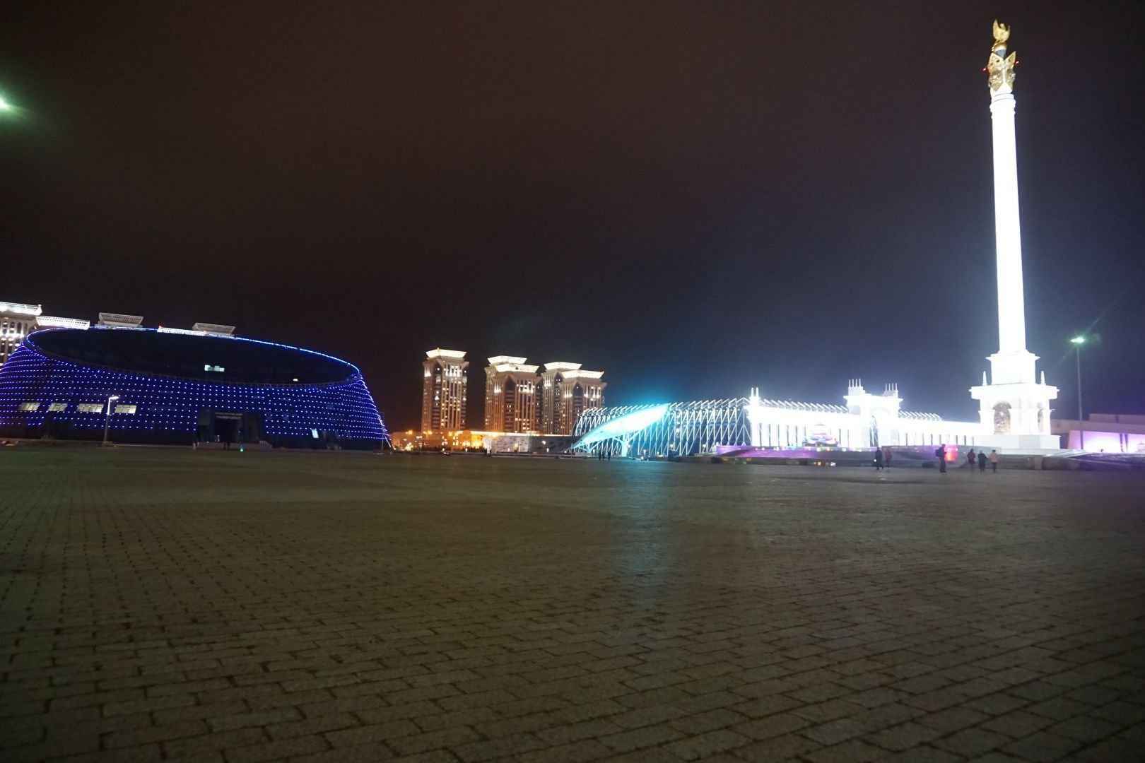 Zur blauen Stunde besuchte ich den Bayterek Tower. Es handelt sich um einen 97 Meter hoher Turm, der eine Aussichtsplattform und ein Museum beherbergt. Der Turm ist ein Symbol für die kasachische Kultur und Geschichte. Er ist auch auf den Kasachischen Geldscheinen abgebildet.