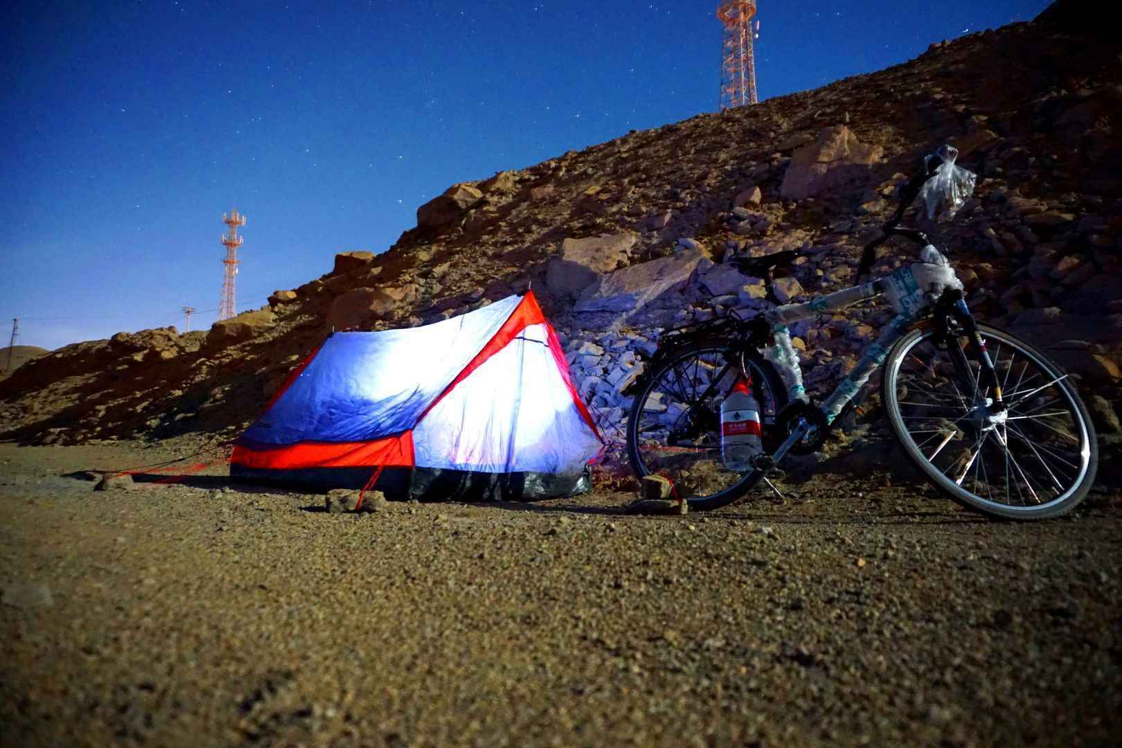 In Sandaoling gab es zum Zeitpunkt meiner Reise kein Hotel, welches ausländische Touristen empfangen durfte. Ich entschloss deshalb zu zelten. Mein Zelt baute ich illergalerweise auf der ersten Ebene unterhalb der Abbruchkante an der Ostflanke des Tagebaus auf.