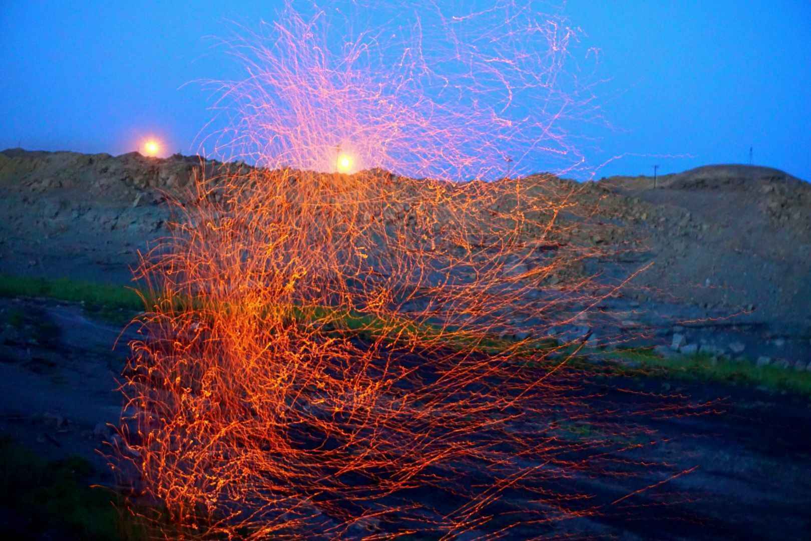 Am Morgen wurde ich vom Geräusch einer heranfahrenden Lok geweckt. Die Dämmerung begann gerade, doch es war noch sehr dunkel. Man sah, wie die Lok im Dunkeln bei jeder Radumdrehung Funken sprühte. Sie war voll mit Kohle geladen und schaffte es nur gerade so, die Steigung zu erklimmen. Der Fahrer hat das Rote Licht meiner Kamera entdeckt und leuchtete mit der Taschenlampe in meine Richtung. Es konnte aber zum Glück mich und mein Zelt nicht entdecken, da es hinter einem Steinhaufen versteckt war.