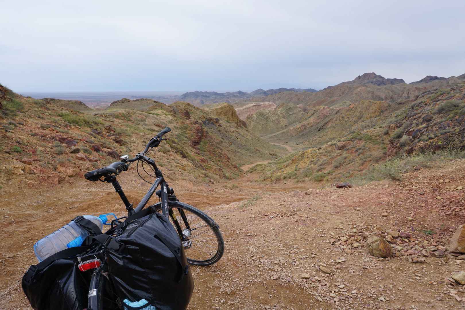 Von Almaty aus sind es gut 200 km zum Sharyn-Canyon. Bei gutem Wetter ist dies in zwei Tagestouren gut machbar. Ich hatte diesen Canyon jedoch ursprünglich nicht auf meiner Reiseliste, weshalb mir die Zeit dazu fehlte. Deshalb habe ich mich am Busbahnhof nach einem Sammeltaxi nach Kegen (Кеген) umgesehen. Für umgerechnet Acht Euro ging es dann im Kleinbus mit dem Fahrrad aufs Dach geschnallt Richtung Canyon. Nach gut zweieinhalb Stunden Fahrt wurde ich an der Stichstraße, welche zum Canyon führt raus gelassen.