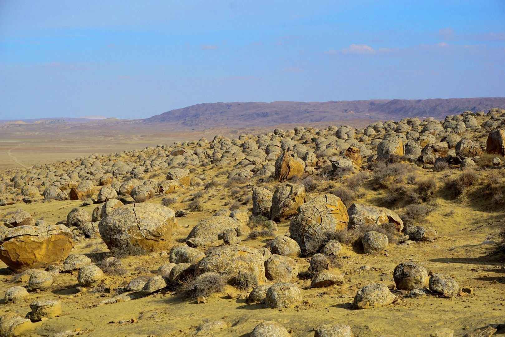 Steinkugeln, soweit das Auge reicht – Radtour durchs Valley of Balls bei Shetpe zum Kaspischen Meer.
