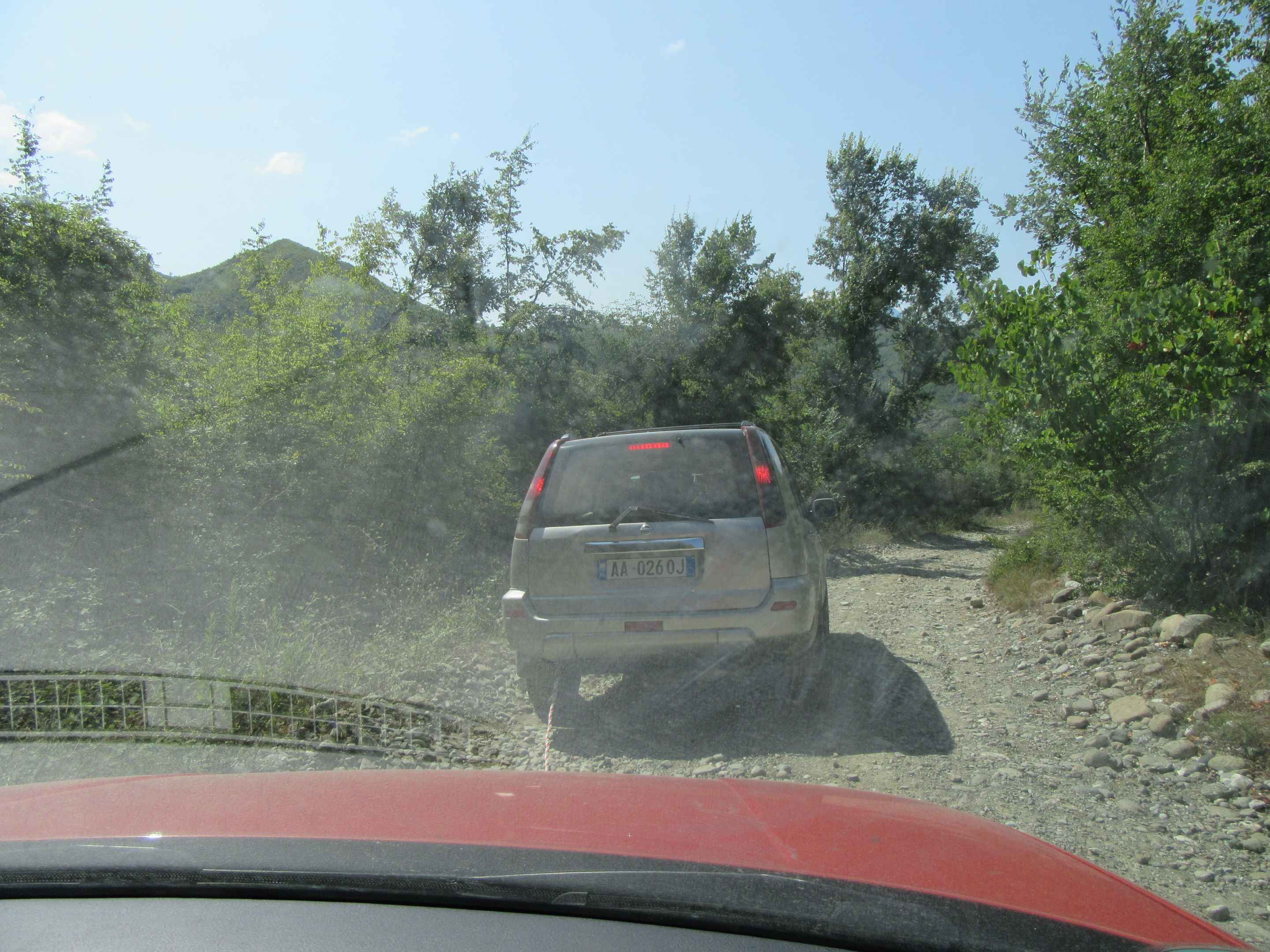 Der vermutlich abenteuerlichste Teil unseres Urlaubs war der Besuch des Holtes Canyons und der Kabashithöhle.Der Kanionit i Holtës (Holtë Canyon) ist touristisch kaum bekannt und noch weniger haben dieses Wunder gesehen, das weniger als zwei Stunden von Berat entfernt liegt. Die Kabashithöhle ist eine von vielen Höhlen in der Region, die 2018 erstmals vermessen wurden. Am nördlichen Flussufer schlängelt sich eine enge kurvige Schotterstraße 700 Höhenmeter hinauf zur Ortschaft Kabash. Mit einem VW-Golf ist die Strecke nicht zu empfehlen und als wir aufsetzten und Öl verloren, waren wir froh, dass jemand vorbeikam und uns kurzerhand abschleppte. Er rief sogar für uns bei der nächsten Werkstatt an und eine halbe Stunde später und nach 20 Euros fuhr unser Auto wieder. Wir fuhren zurück zum Canyon, wo wir das Auto abstellten, erstmal Mittagspause machten und uns dann zu Fuß auf die 6 km lange Wanderung machte. Keine halbe Stunde später gegen halb zwei kam ein Kleinbus vorbei und für 200 Lek pro Person befanden wir uns kurzerhand später 700 Höhenmeter weiter oben am Beginn des Wanderwegs zur Kabash-Höhle beim Cafe Nardi. Der Wanderweg ist mittelmäßig gut markiert. Er führt von dem Cafe in der Ortschaft zum Rand des Canyons und dann entlang eines Geröllfeldes unterhalb der Kalksteinklippe runter zur Höhle. Insbesondere auf dem Geröllfeld ist es hilfreich, sich eine Offlinekarte z. B. von Komoot herunterzuladen, um den Wanderweg und den Eingang zur Höhle zu finden. Die Kabash Höhle erreichten wir nach knapp einer Stunde gemütlicher Wanderung. Sie ist insgesamt 640 Meter lang. Der Eingang ist gut versteckt im Dickicht im Geröllfeld. Neben der Kabashithöhle befinden sich am Nordufer des Canyons noch die die 125,6 m lange Ariuthöhle (Shpella e Ariut), die 116 m lange Zgardamenehöhle (Shpella Zgardamene) und die mit 1539 m lange und ganze 284 m tiefe Avulithöhle (Shpella Avulit), welche nur noch von der über 700 Meter tiefen und noch nicht vollständig erforschten Barrutit-Kaceverrit-Höhle (Shpella Barrutit-Kaceverrit) auf der Südseite des Canyons übertroffen wird. Die Kabashithöhle ist jedoch die größte und Speläologisch interessanteste Höhle, welche ohne Kletterausrüstung besichtigt werden kann. Nicht nur ist sie reich an Trofsteinen, sie wird auch von Schwefelhaltigem lauwarmen Thermalwasser durchströmt und bildet so einen surrealen Lebensraum für Bakterienkolonien, welche wie ein roter Schleim von einem fremden Planeten die Tropfsteine in ewiger Dunkelheit besiedeln. Auf dem Rückweg zum Cafe entdeckten wir am Wegrand eine Griechische Landschildkröte. Im Cafe haben wir uns einen Tee zum Aufwärmen und ein Abendessen geholt. Alles wurde frisch zubereitet. Wir hatten einen Bunten Salat, frischen Ziegenkäse, Feigenmarmelade, Omlet und Weißbrot für drei Personen für umgerechnet 13 Euro. Wir durften sogar auf der Wiese neben dem Cafe zelten. Am nächsten Morgen um 07:20 Uhr fuhren wir mit dem Bus wieder runter zum Canyon. VOn der Straße sind es etwa 15 Minuten bis zum Eingang des Canyons zu laufen. Der Canyon erstreckt sich entlang von 3 Kilometern mit steilen Ufern von bis zu 100-150 Metern Höhe und einer Wassertiefe von bis zu 3 Metern. Er verfügt über mehrere kleine Thermal und Schwefelquellen. Ein Thermalschwimmbad befindet sich am Eingang zum Canyon, ein großes Schwefelbecken ist etwa fünf Minuten im Canyon drinnen. Das Wasser ist eher lauwarm, aber trotzdem angenehm. Es gibt noch mehrere Quellen mit wärmeren Wasser, die jedoch zu klein zum Baden sind. Der Canyon ist besonders zwischen Frühling und Herbst beliebt, wenn das Wasser niedrig genug ist, um ihn zu durchqueren. Wir waren Anfang September dort und trotz des extrem niedrigen Wasserstandes mussten wir mehrere Passagen schwimmen. Das Wasser war eiskalt und so drehten wir nach einer Stunde wieder um. Ein markantes Merkmal des Kanyons ist die enge Durchgangsstelle zwischen den Klippen, die eine isolierende Wirkung hat und das Gefühl vermittelt, von der übrigen Welt abgeschnitten zu sein. Zum Schluss kam sogar noch die Morgensonne zwischen den Wolken hervor und ließ die schmalen Felswände goldgelb erstrahlen.