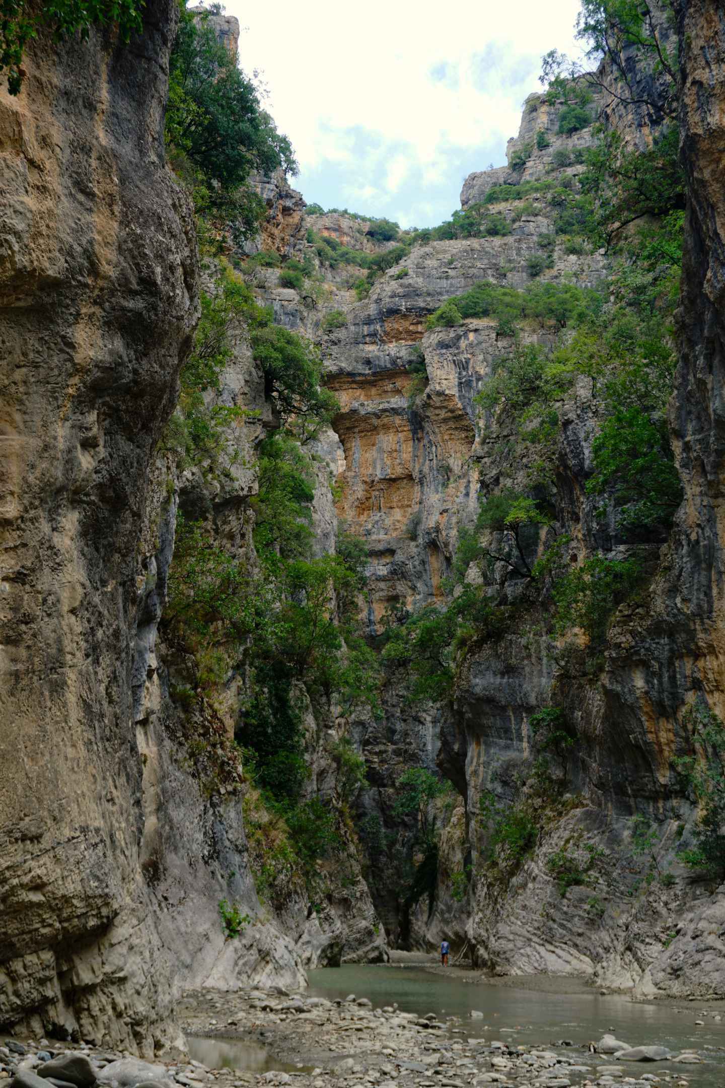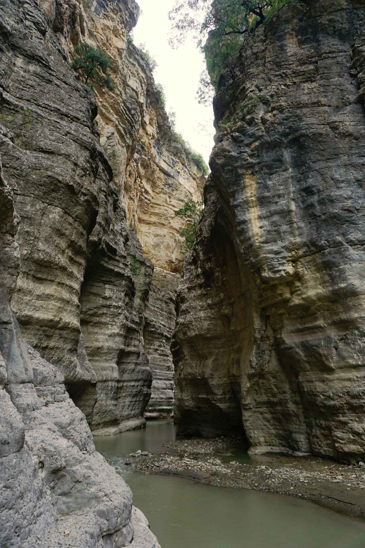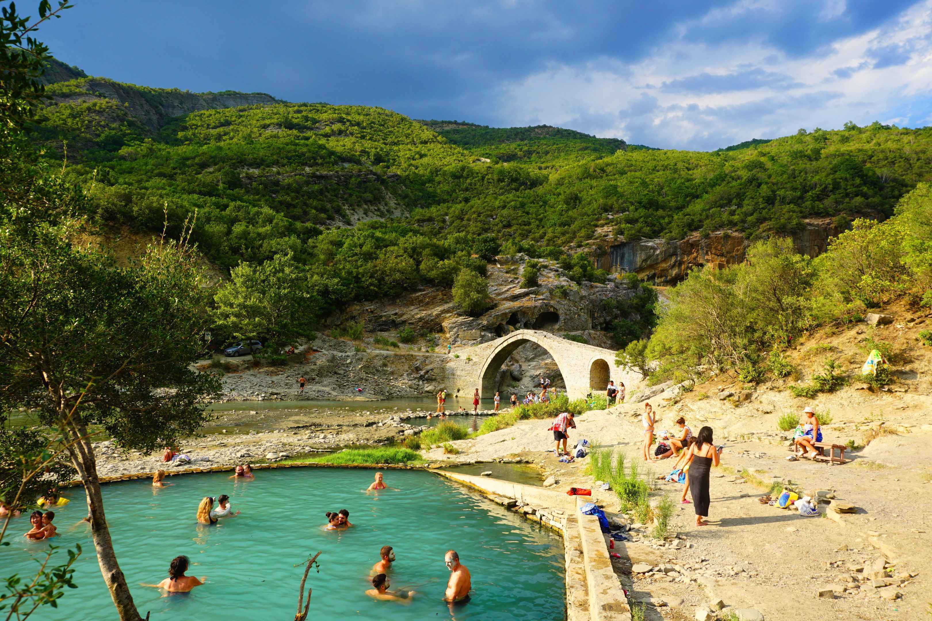 Ein Canyon, durch den man wandern kann, spektakuläre Aussichten, eine alte osmanische Brücke und Thermalquellen alles an einem Ort? Willkommen an der Lëngarica-Schlucht in Albanien.Um zur Schlucht zu gelangen, fährt man ab der Stadt Përmet bis zur Ortschaft Petran entlang des Flusses Vjosa (auch Aoos genannt) richtung Südosten. Von dort sind es noch 6,2 km entlang der Kengarica. Man kann auch mit dem Bus bis Petran fahren oder Trampen, was aufgrund der Beliebtheit des Ortes relativ einfach ist. Entlang des Vjosa befinden sich mehrere alte Hängebrücken, in mehr oder weniger gutem Zustand. Am und im Canyon gibt es insgesamt acht mehr oder weniger warme Thermalquellen. Die größten zwei Quellen befinden sich direkt am Eingang zum Canyon. Diese werden auch am meisten besucht. Zwei weitere befinden sich beidseitig an der osmanischen Brücke. Die nächsten zwei Thermalquellen befinden sich je fünf Minuten Fußmarsch entfernt auf der linken Seite des Canyons, diese sind jedoch nicht so warm. Die letzte Quelle befindet sich weitere 5 Minuten entfernt auf der rechten Seite und ist angenehm warm, um längere Zeit im Schwefelwasser zu verbringen. Eine detailierte Beschreibung der Thermalquellen bietet das Paper "Hypogene Karst in the External Albanides and its pronounced geomorphical effect" von 2022. Nach der letzten Thermalquelle beginnt der Canyon erst so richtig. Die Felsen werden immer schmaler und höher und man muss seine Wanderschuhe gegen Bageschlappen oder Wasserschuhe tauschen oder barfuß gehen. Das Wasser ist angenehm frisch und eine willkommene Abkühlung von der sommerlichen Hitze. Man kann etwa zweieinhalb Stunden durch den Canyon waten. Ich hatte meine Wasserschuhe vergessen, weshalb ich die Wanderung barfuß machte. Das Wasser ging mir maximal bis zu den Oberschenkeln. Auf halber Strecke teilt sich der Canyon, nach rechts geht es zu einem kleinen Wasserfall, der jedoch aufgrund der Trockenheit ausgetrocknet war. Nach links geht der Canyon weiter bis zu einem Staudamm. Nach insgesamt etwa zweieinhalb Stunden erreicht man den Staudamm, von hier aus kann man den Canyon verlassen. Meine Füße waren schon ganz durchweicht von dem Wasser und ich wünschte, ich hätte Wasserschuhe dabei gehabt. Zum Glück konnte ich nun meine Wanderschuhe wieder anziehen. Es gibt zwei Wanderwege, je einen auf den beiden Seiten des Canyons. Der Weg auf der Südseite ist wesentlich besser markiert und bietet einen schönen Ausblich an der Stelle, an der sich der Canyon teilt. Am Parkplatz standen mehrere Wohnwägen, wir waren jedoch die einzigen mit Zelt. Wir haben gewartet, bis die Tagestouristen gingen und dann an der fünften Thermalquelle im Canyon das Zelt aufgebaut. Ab halb neun abends hatten wir das Thermalbecken ganz alleine. Man kann nachts einfach ein warmes Bad nehmen und dabei die Milchstraße beobachten.