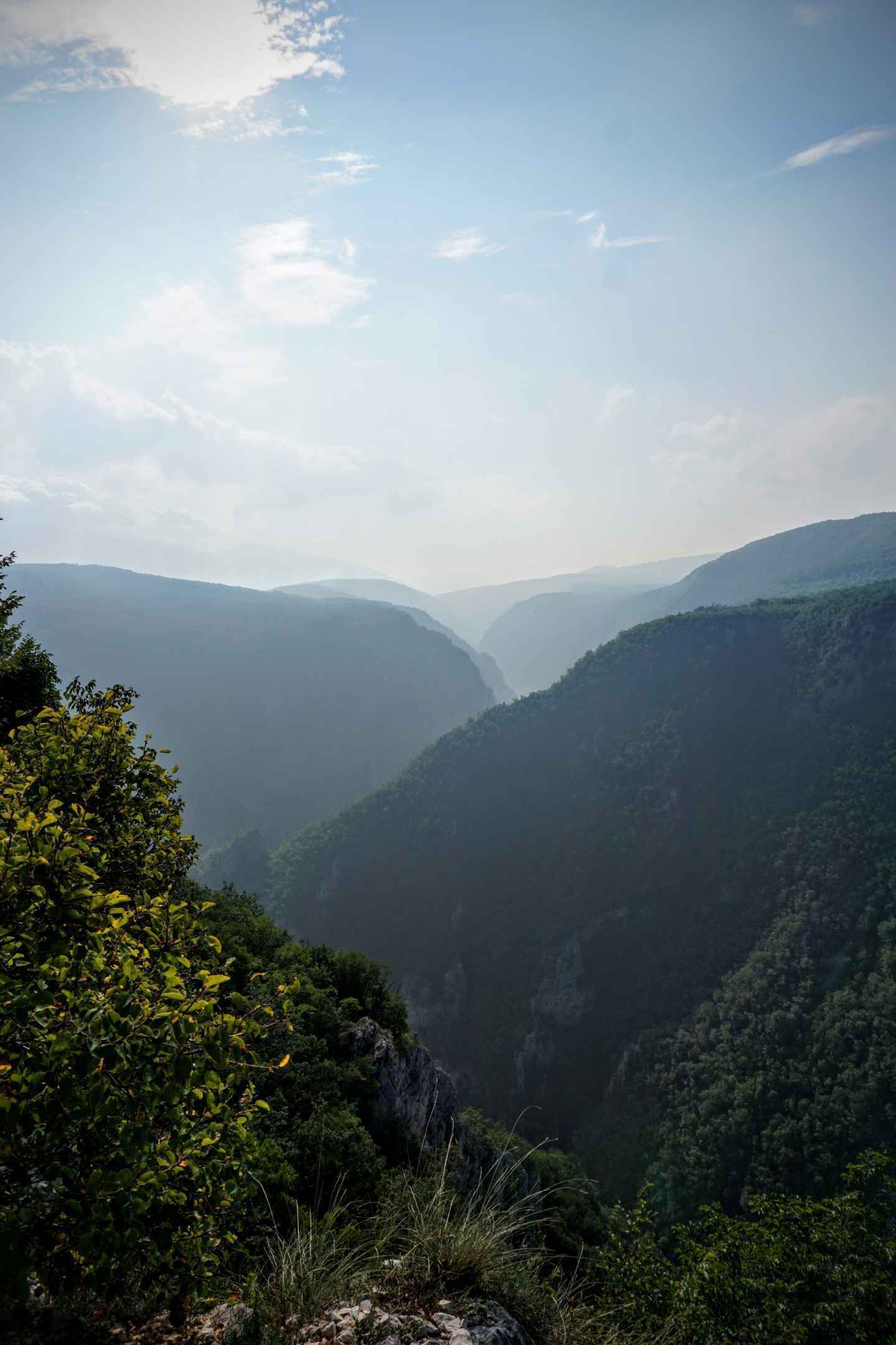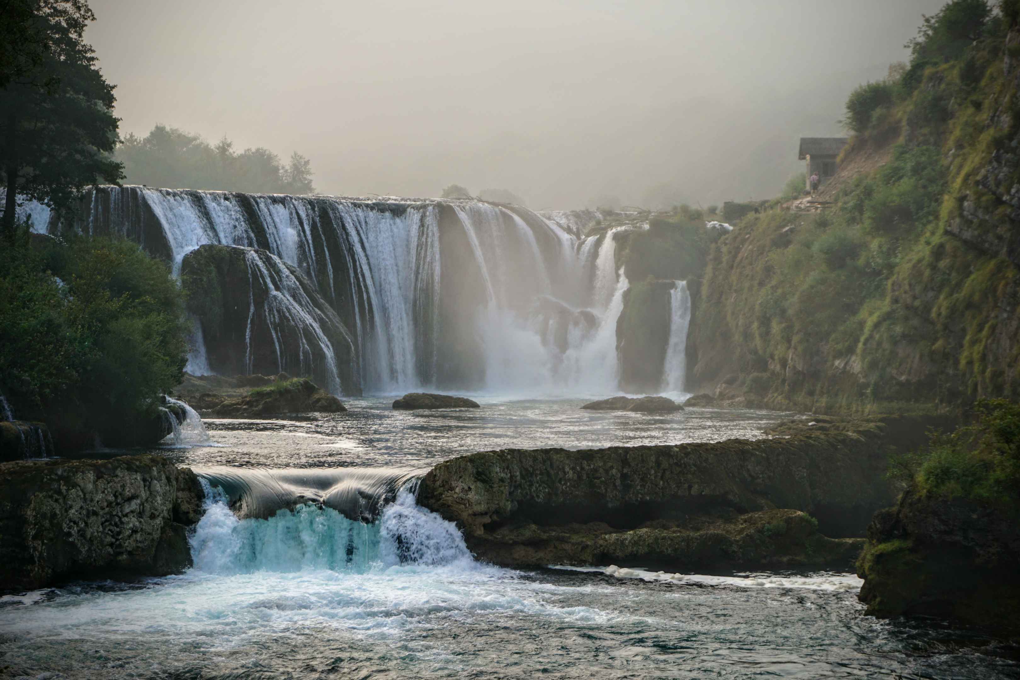 Der Una-Nationalpark erstreckt sich über eine Fläche von etwa 19.800 Hektar und liegt im Nordwesten von Bosnien und Herzegowina, entlang der Grenze zu Kroatien. Der Park wurde im Jahr 2008 gegründet und ist benannt nach dem Fluss Una, der das zentrale Gewässer des Schutzgebiets ist. Der Una-Fluss ist bekannt für seine kristallklaren Gewässer und seine smaragdgrüne Farbe. Der Park beherbergt eine reiche Vielfalt an Tierarten, darunter Fischotter, Luchse, Wölfe, Wildschweine und verschiedene Vogelarten wie der Eisvogel und der Schwarzstorch.Eine der Hauptattraktionen des Una-Nationalparks ist der Strbacki Buk-Wasserfall. Er hat eine Fallhöhe von etwa 24 Metern bei einer Breite von 50 Metern. Etwas südlich vom Wasserfall befindet sich ein rudimentärer Campingplatz (Kamp Sehic), welcher direkt am Fluss Una gelegen ist. Es gibt eine Toilette und ein Waschbecken, welche aus einem Gebirgsbach gespeist werden. VOn Dort aus haben wir uns am morgen auf den Weg zum Wasserfall gemacht. Wir kamen früh am Morgen kurz nach Sonnenaufgang an. Eigentlich muss man an einer Schranke 10 Mark Eintritt zahlen, doch es war noch keiner da. Wir waren die einzigen Menschen weit und breit, so dass wir den Wasserfall in Ruhe betrachten konnten. Vom Wasserfall fuhren wir entlang der Una weiter südlich. Bei der Ortschaft Ostrovica befindet sich eine Brücke über den Fluss. Der Nebel lichtete sich langsam im Licht der Morgensonne und gab den Blick auf die Una frei. Nach der Ortschaft hörte die asphaltierte Straße für ein kurzes Stück auf, der Schotterweg war jedoch auch sehr gut befahrbar. Als nächstes kamen wir an der "Most Jarapaga", einer alten Eisenbahnbrücke vorbei. Die Bahnstrecke verläuft im Unatal, man kann sich nur ansatzweise ausmalen, wie atemberaubend die Bahnfahrt durch dieses Tal früher gewesen sein musste. Leider wurde die Strecke mit dem Zerfall Jugoslawiens stillgelegt und wird aufgrund ihrer Lage im heutigen Grenzgebiet zwischen Basnien-Herzegowina und Kroatien auf absehbare Zeit nicht reaktiviert. Etwas südlich von der Brücke befindet sich die Ortschaft Martin Brod, wo sich die großen Una Wasserfälle befinden. Hier beginnt auch der Una Canyon. Über eine Serpentinenstraße verließen wir das Una Tal. Von oben hatten wir nochmal einen tollen ausblick auf die Una Schlucht.