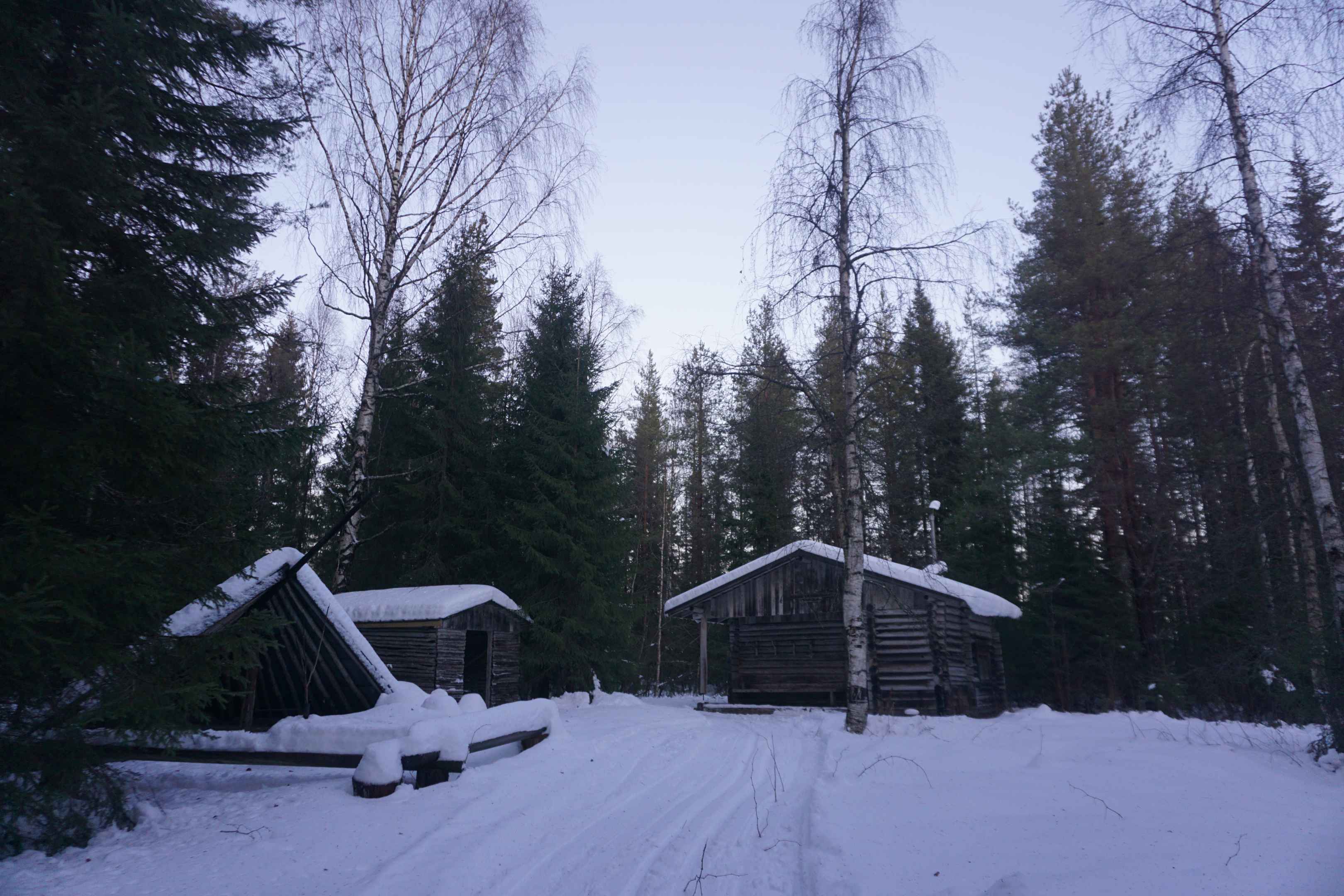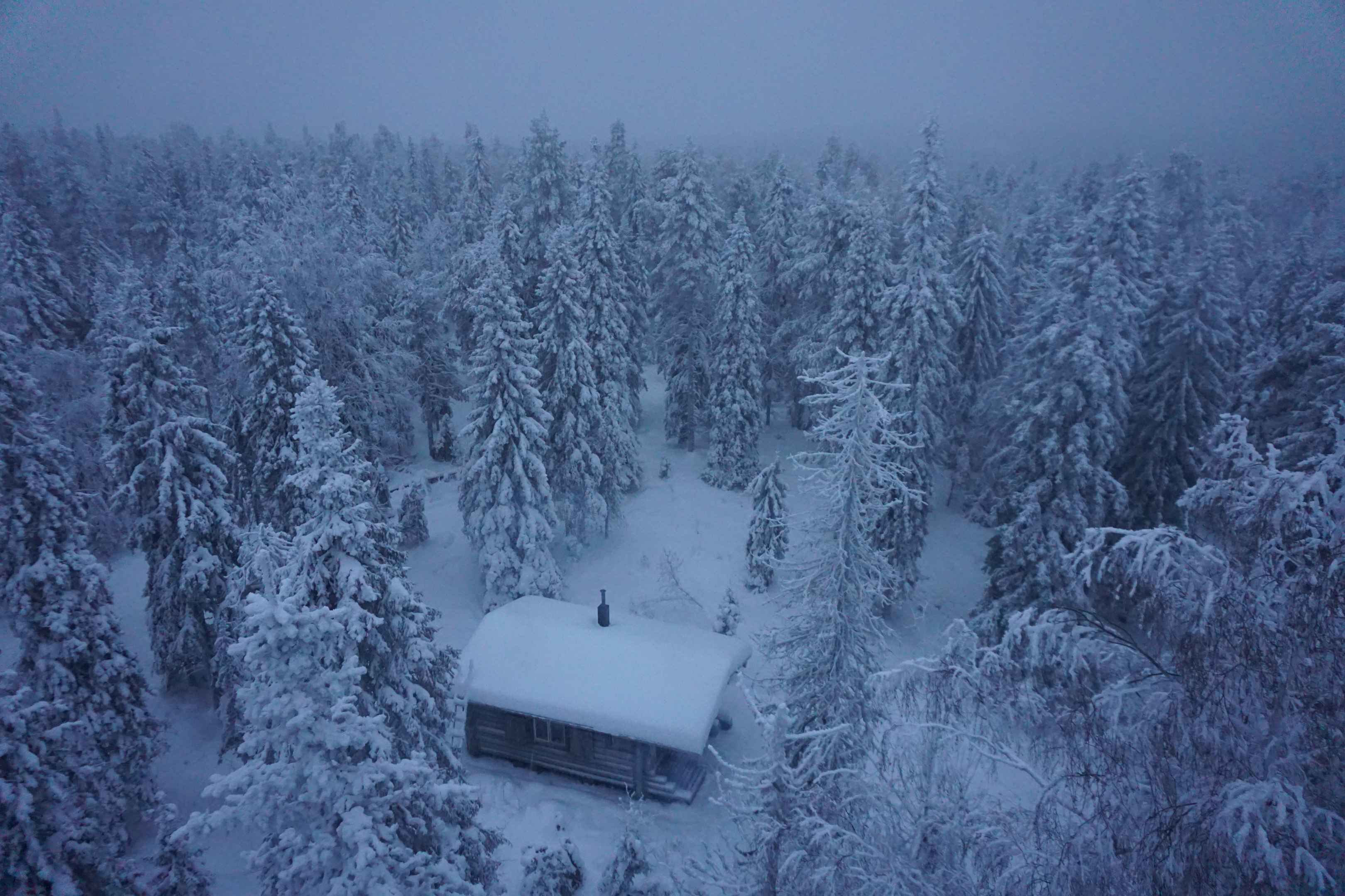 Je tiefer in den Nationalpark vordringe, desto tiefer wird der Schnee. Auf den letzen Kilometern quert der Wanderweg ein Geröllfeld, nur dank meines GPS kann ich den Wanderweg wieder finden. Ich würde behaupten, alleine im Winter durch Lappland zu wandern, gehört zu den top 5 gefährlichsten Sachen, die ich die letzten Jahre gemacht habe. Ich rate jedem, eine solche Tour nur zu zweit zu machen, da man hier draußen ganz auf sich allein gestellt ist. Für die 7 km von der Straße zur Hütte brauche ich knapp drei Stunden. Die Louevaara Hütte befindet sich auf einem Hügel im Wald und war früher die Schutzhütte für den angrenzenden Feuerwachturm für Waldbrände im Sommer. Die Hütte ist so gut zwischen den Bäumen versteckt, dass ich sie erst sehe, als ich quasi schon direkt davor stehe.