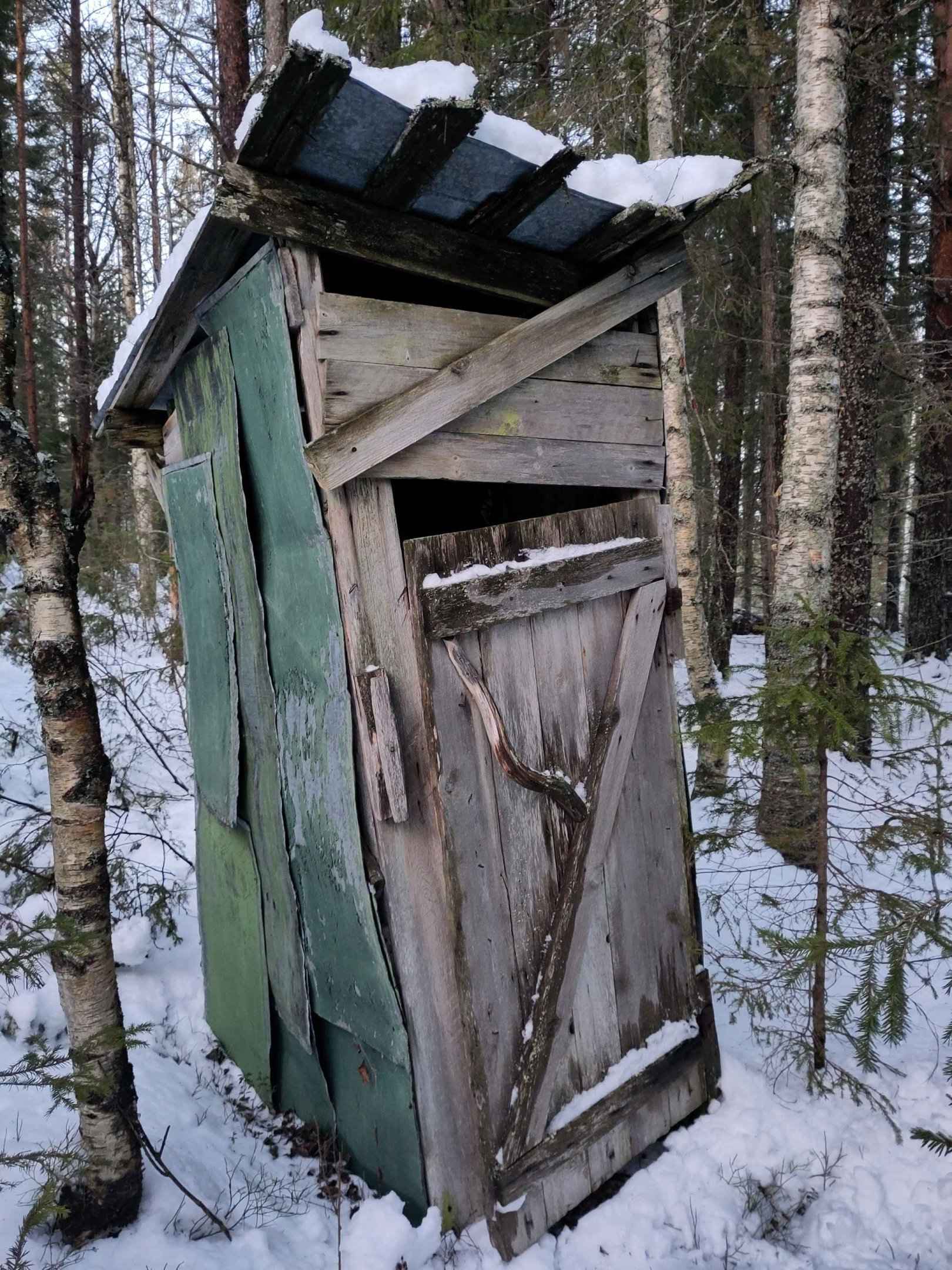 Hinter der Hütte steht ein etwas windiges Plumpsklo, welches auch schon bessere Tage gesehen hat.