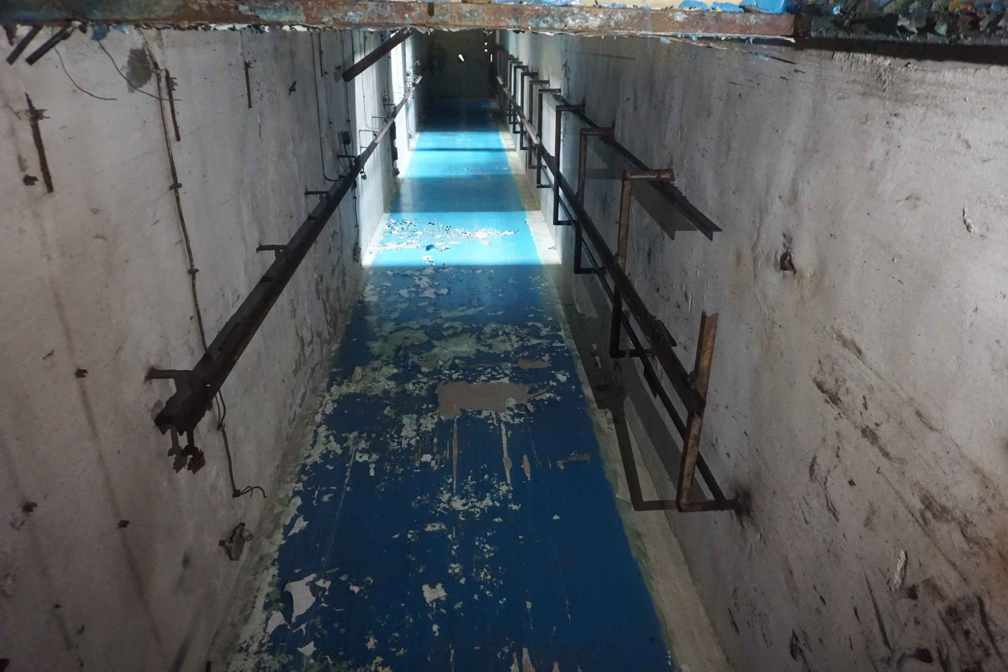 Ein leerer schwerlast-Aufzugschacht führt in die oberen Stockwerke, die Zugang ist jedoch vermauert und das Klettern war mir zu riskant. Deshalb ging ich weiter und erkundete ein anderes Gebäude.