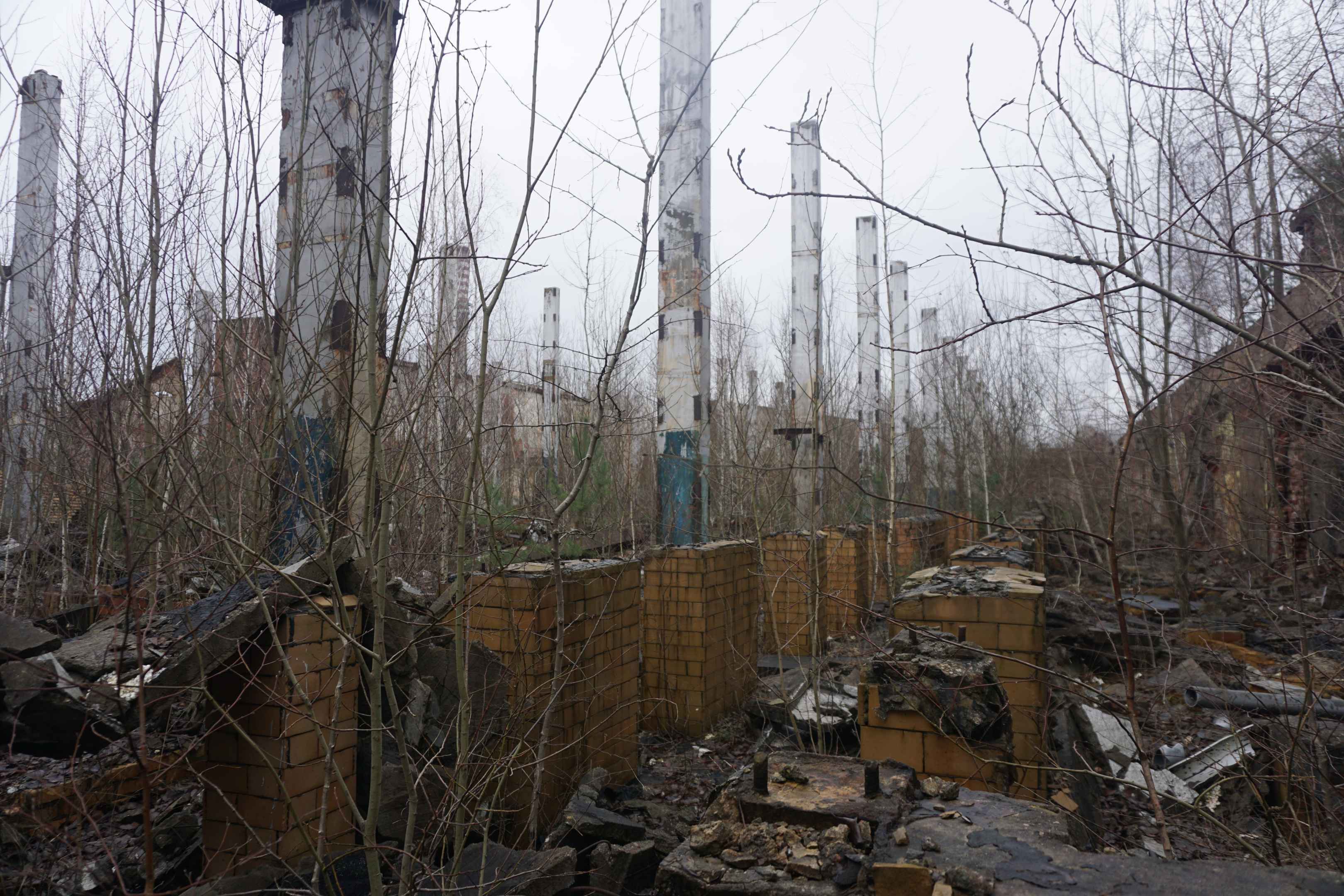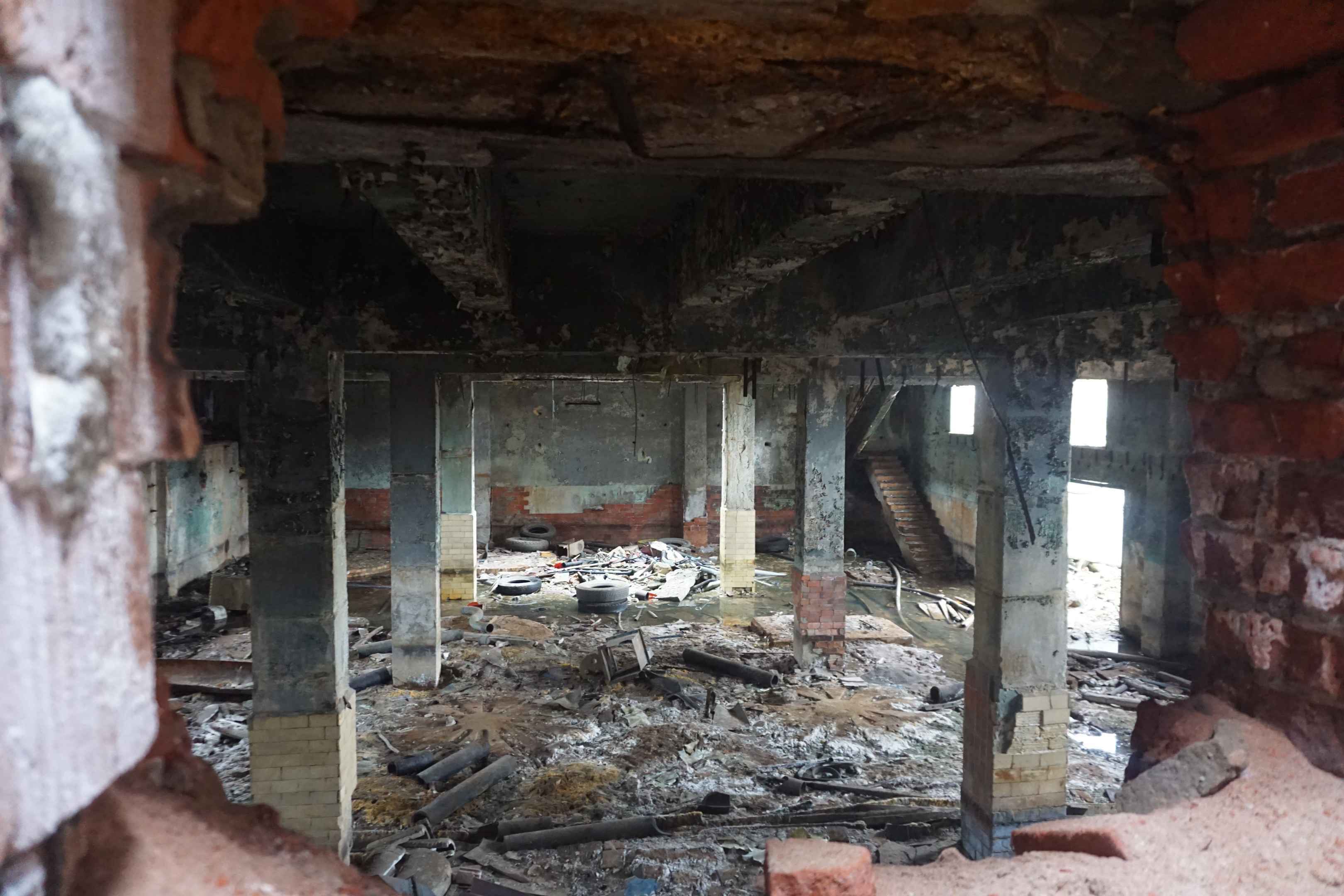 Zum Schluss habe ich noch den südöstlichen Teil des Geländes erkundet. Das meiste wurde bereits geplündert. DIese ehemalige Produktionshalle wurde bis auf die Grundmauern geplündert.