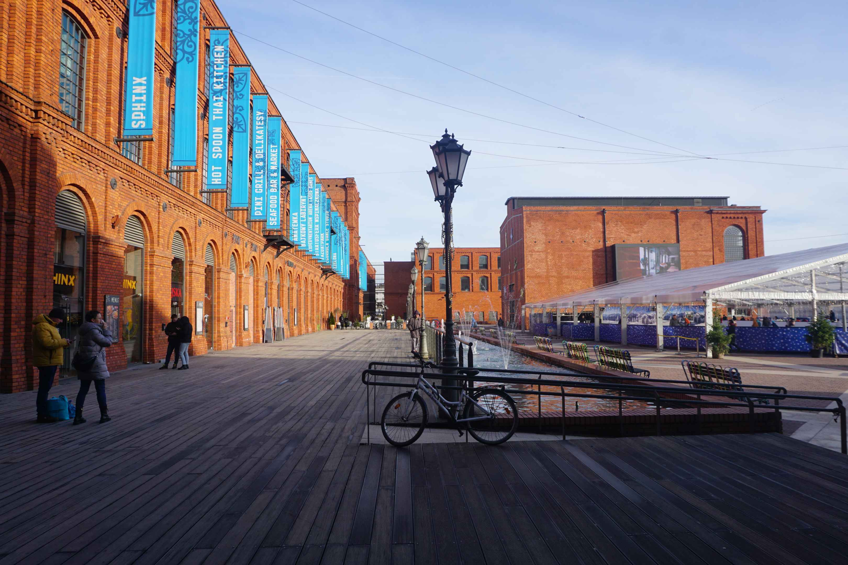 Die Stadt musste sich neu finden und dies geschah durch einen gewaltigen Umbau. Die 1892 fertiggestellte Fabrik von Izraela Poznańskiego, gleich nördlich des Stadtzentrums gelegen und einst eine der größten Fabriken der Stadt wurde nach der Insolvenz 1992 großteils geplündert. Eine französische Investmentfirma kaufte das Areal auf und entwickelte die alten Backsteinhüllen zu einem heute "hippen" Einkaufszentrum mit Restaurants, Museum, einem Hotel, Kletterhalle, Kino und weiteren Attraktionen wie eine Eislaufbahn im Winter.