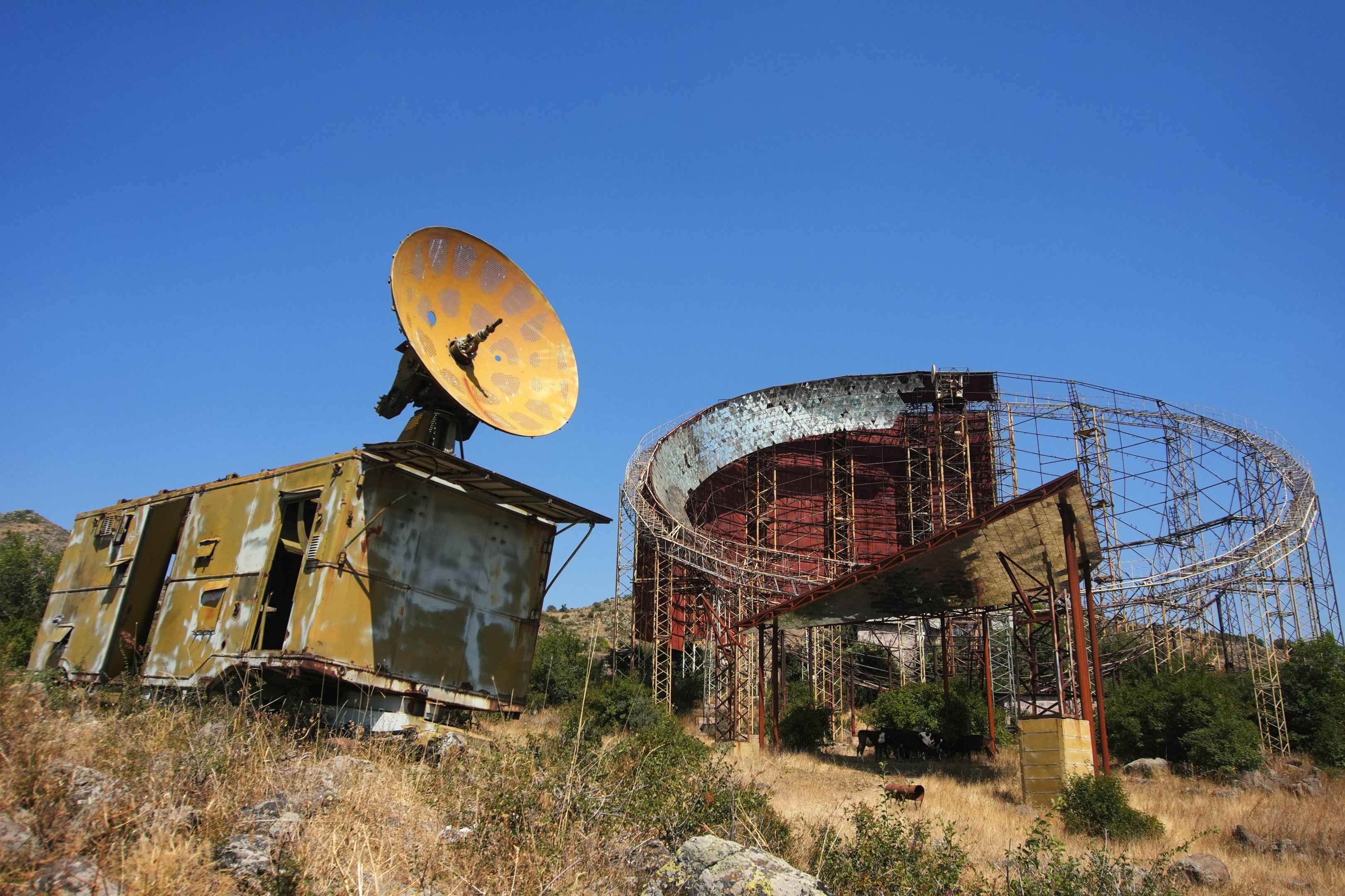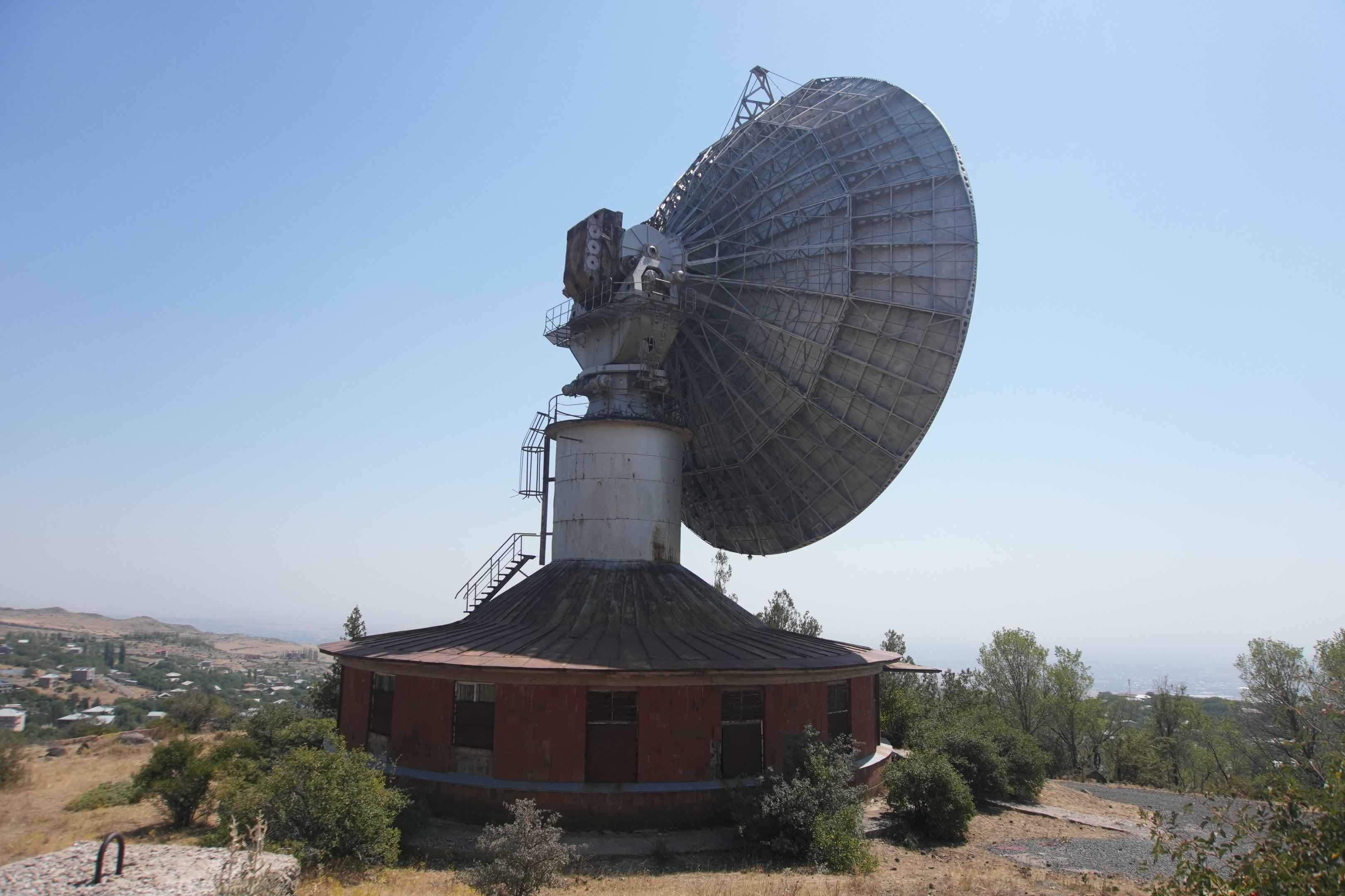 Nachdem ich einige Zeit in Armenien unterwegs gewesen war, verbrachte ich zum Abschluss noch ein paar Tage in Eriwan. Unweit der Hauptstadt befindet sich eine verlassene wissenschaftliche Anlage aus der Sowjetzeit: ein Radioteleskopkomplex, der heute weitgehend aufgegeben ist und frei in der Landschaft steht. Ich war nach dem U-Bahn-Tunnel in Eriwan und vor dem Kaukasus hier.