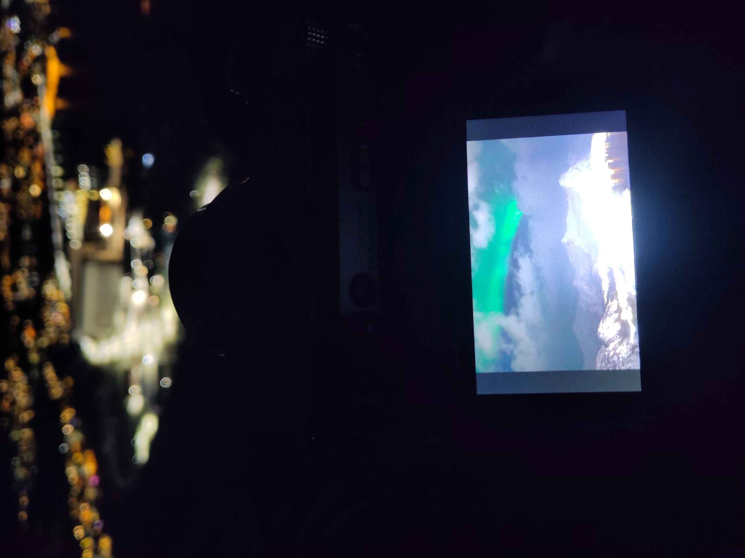 Die Lichter tanzen sich langsam über den Himmel und variieren dabei in Form und Intensität. Ich war alleine an dem Aussichtspunkt. Von unten leuchtete die Stadt und über mir die Sterne und die grünlichen Lichter.