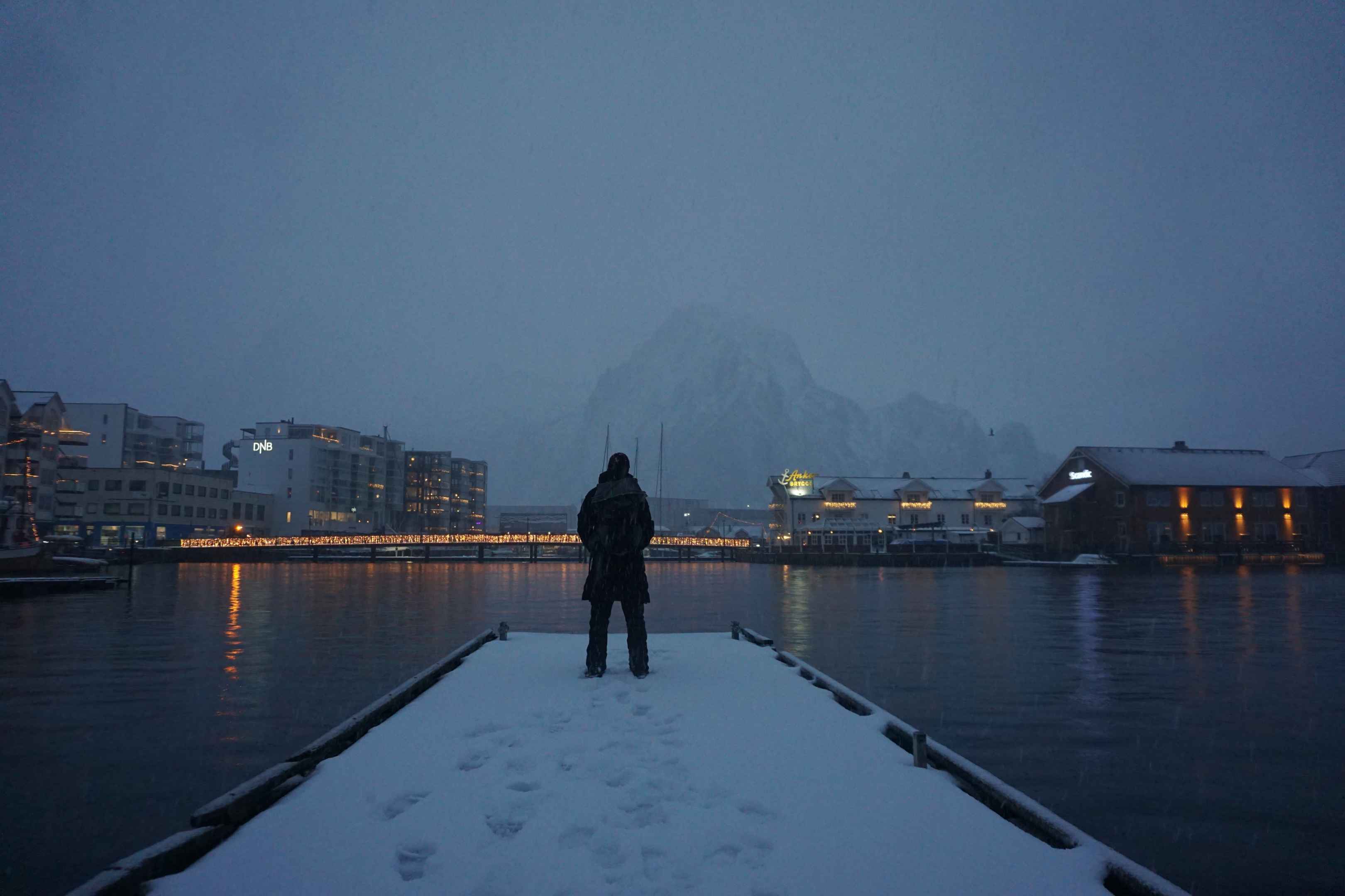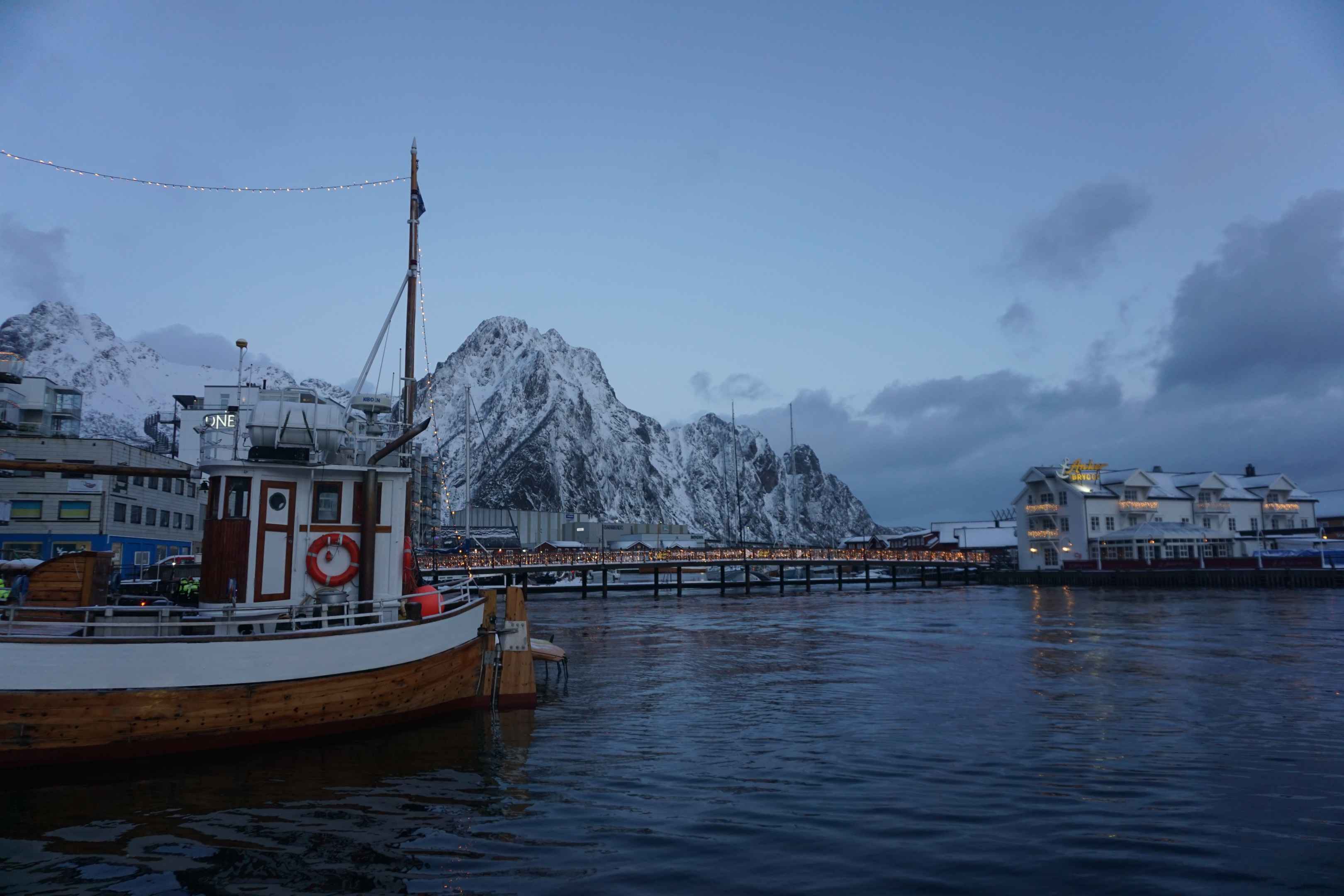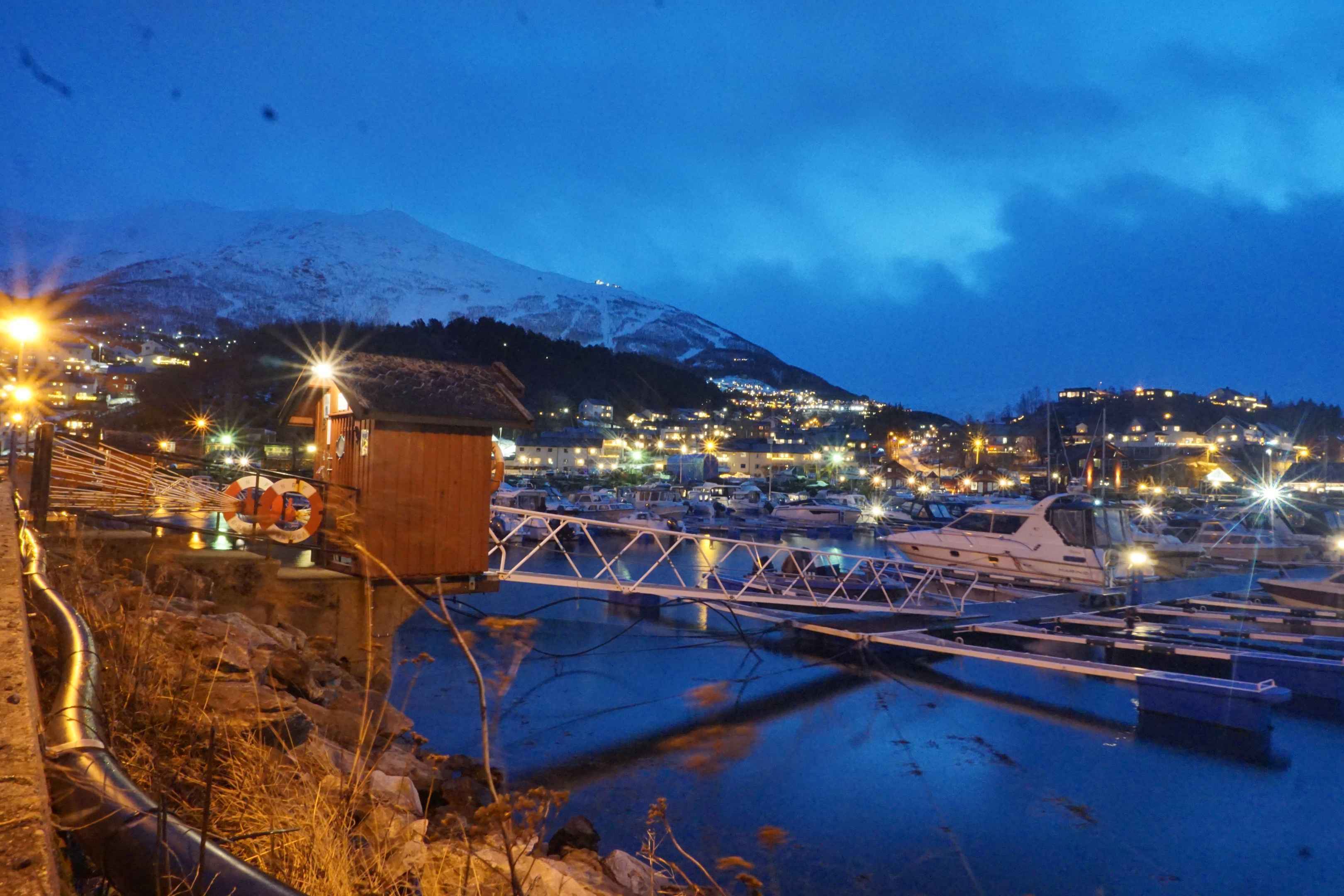 In Svolvær hatten wir ein AirBnB gebucht. Unsere Unterkunft war relativ nah am Busbahnhof. Die Stadt lässt sich gut zu Fuß erkunden. Im Nordosten der Stadt gibt es einen kleinen Segelboothafen. Als ich am Vormittag gegen 10 Uhr dort war, begann gerade die Morgendämmerung.