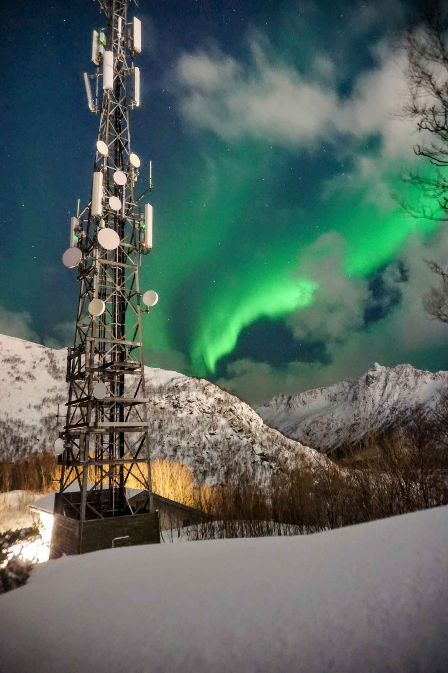 An dem Abend war es sehr bewölt, trotzem konnte man die Polarlichter zwischen den Wolken durchschimmern sehen.