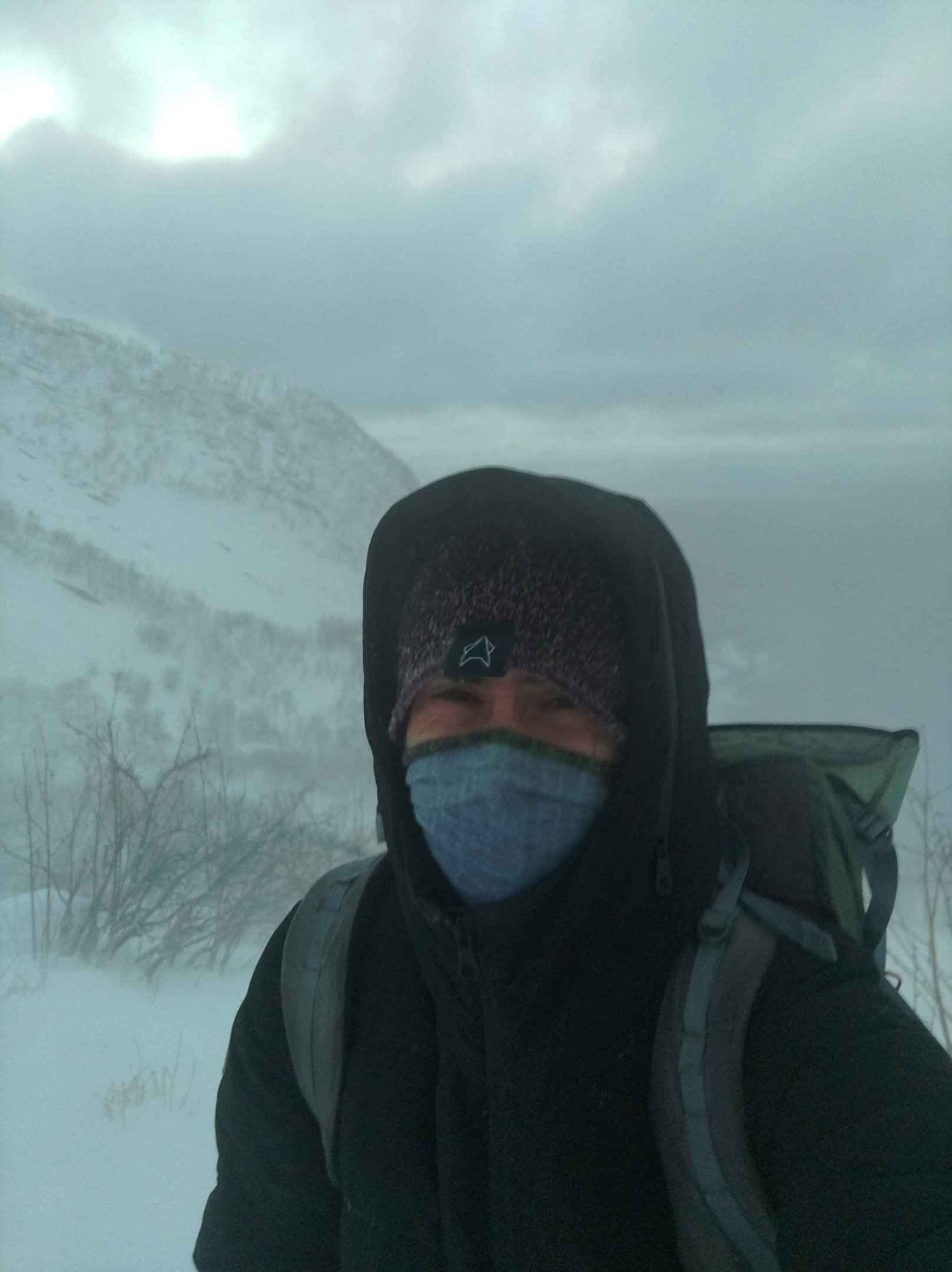 Im unteren Bereich gibt es kleinere Büsche und Bäume. Diese waren teils so zugeschneit, dass nur noch die Spitzen rausschauten. je höher ich kam, desto tiefer wurde der Schnee. Etwas oberhalb der Baumgrenze, etwa auf halber Strecke kam ich kaum noch vorwärts und das wetter verschlechterte sich. Am Horizont brauten sich dunkle wolken zusammen und der Wind nahm zu.