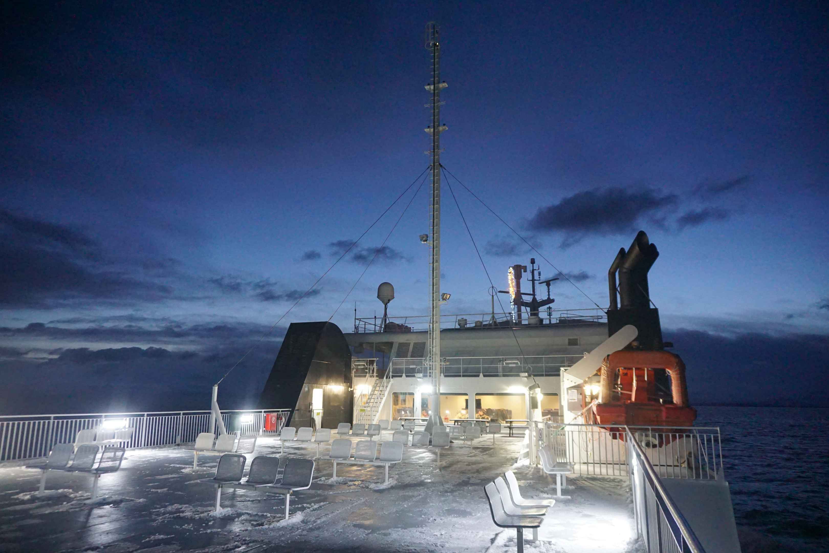 Am nächsten Morgen mussten wir bereits früh aufbrechen, um die Fähre nach Bodø zu erwischen. Es war sehr wenig los. Trotz ruhiger See wurde ich leicht seekrank. Das einzige was mir half, war, nach draußen zu gehen, und die Sterne anzuvisieren.