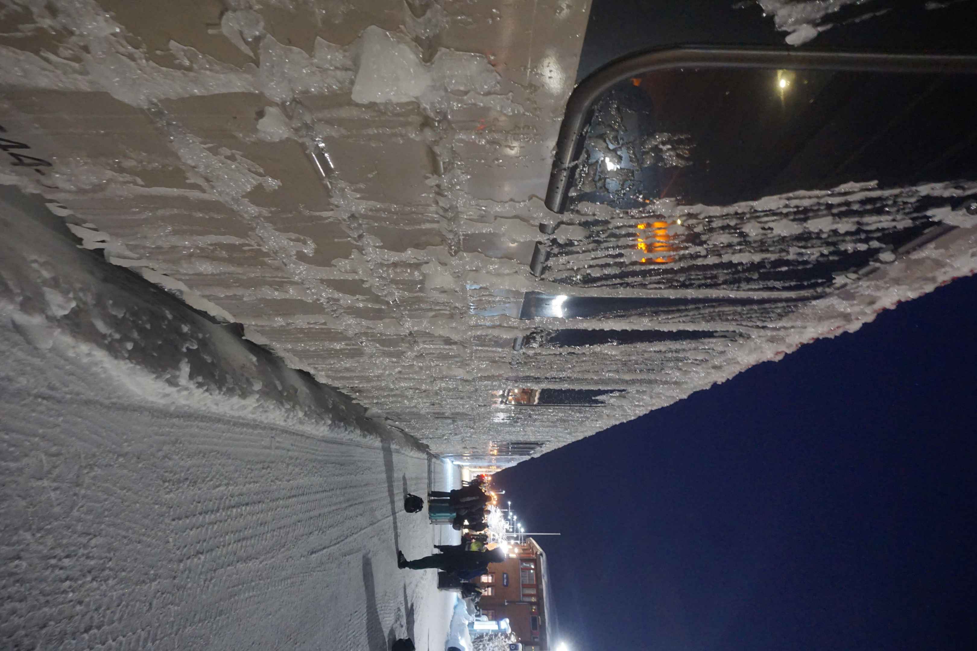 Trondheim war der letzte Zwischenstopp auf meiner Fahrt nach Skandinavien. Mit dem Zug aus Fauske kamen wir mit etwa drei Stunden Verspätung gegen Mitternacht in Trondheim an. Die Außenseite des Zugs war komplett vereist.