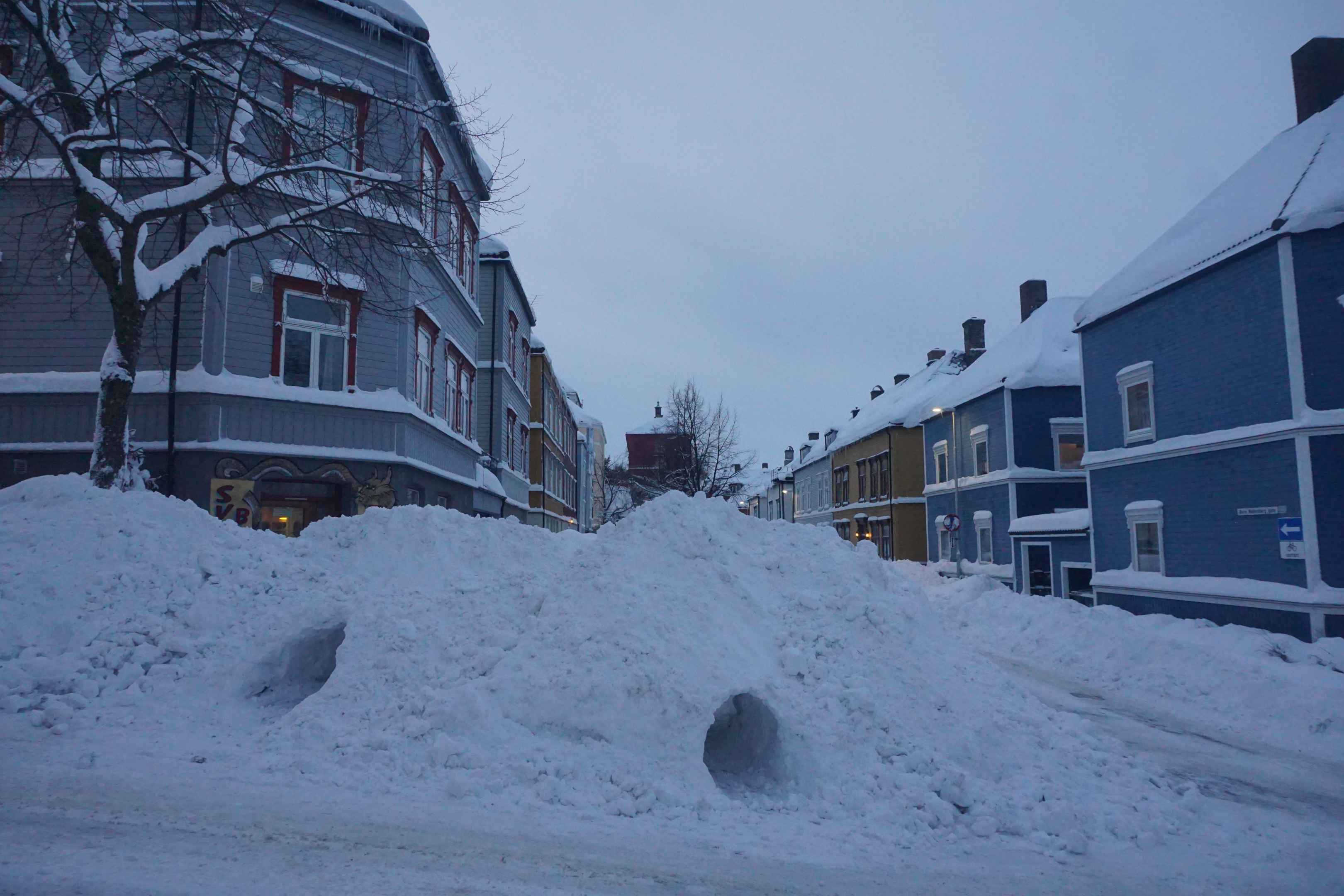 Von dem Fahrradlift aus bin ich weiter durch die Stadt in die Fußgängerzone geschlendert. Die bunten schneebedeckten Häuschen geben ein uriges Bild ab. Ich hätte mich gerne in ein Café gesetzt, aber es war ein Feiertag (6. Januar) und deshalb war fast alles geschlossen.