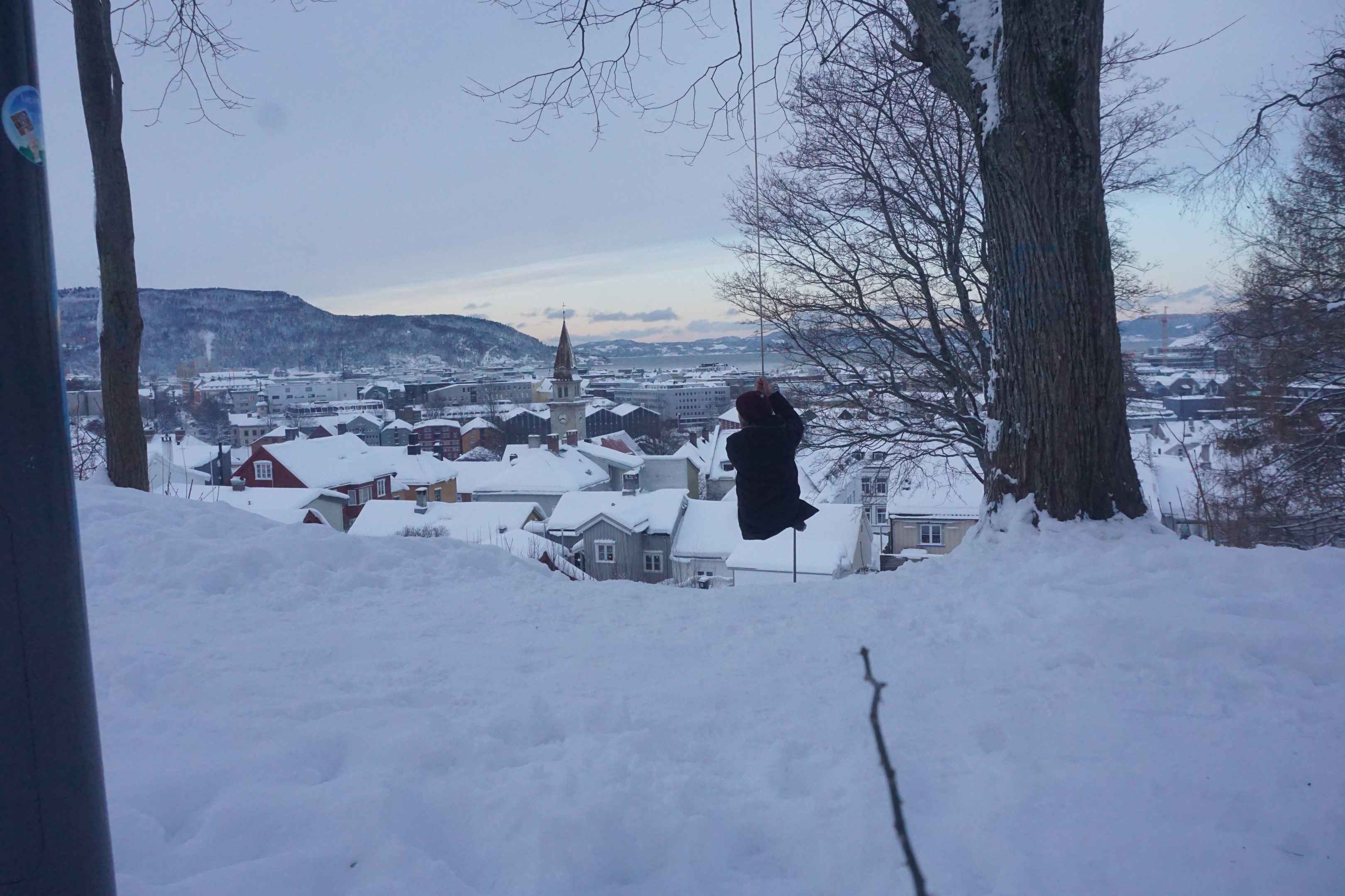 Auf einem Hügel südöstlich vom Stadtzentrum befindet sich die Festung Kristiansten. Von hier hat man einen schönen Ausblick über die Stadt. Ein schmaler Fußweg führt nach oben. Etwa auf halber Strecke an einem Baum hängt eine Schaukel mit Blick über das Stadtzentrum und den Fjord.