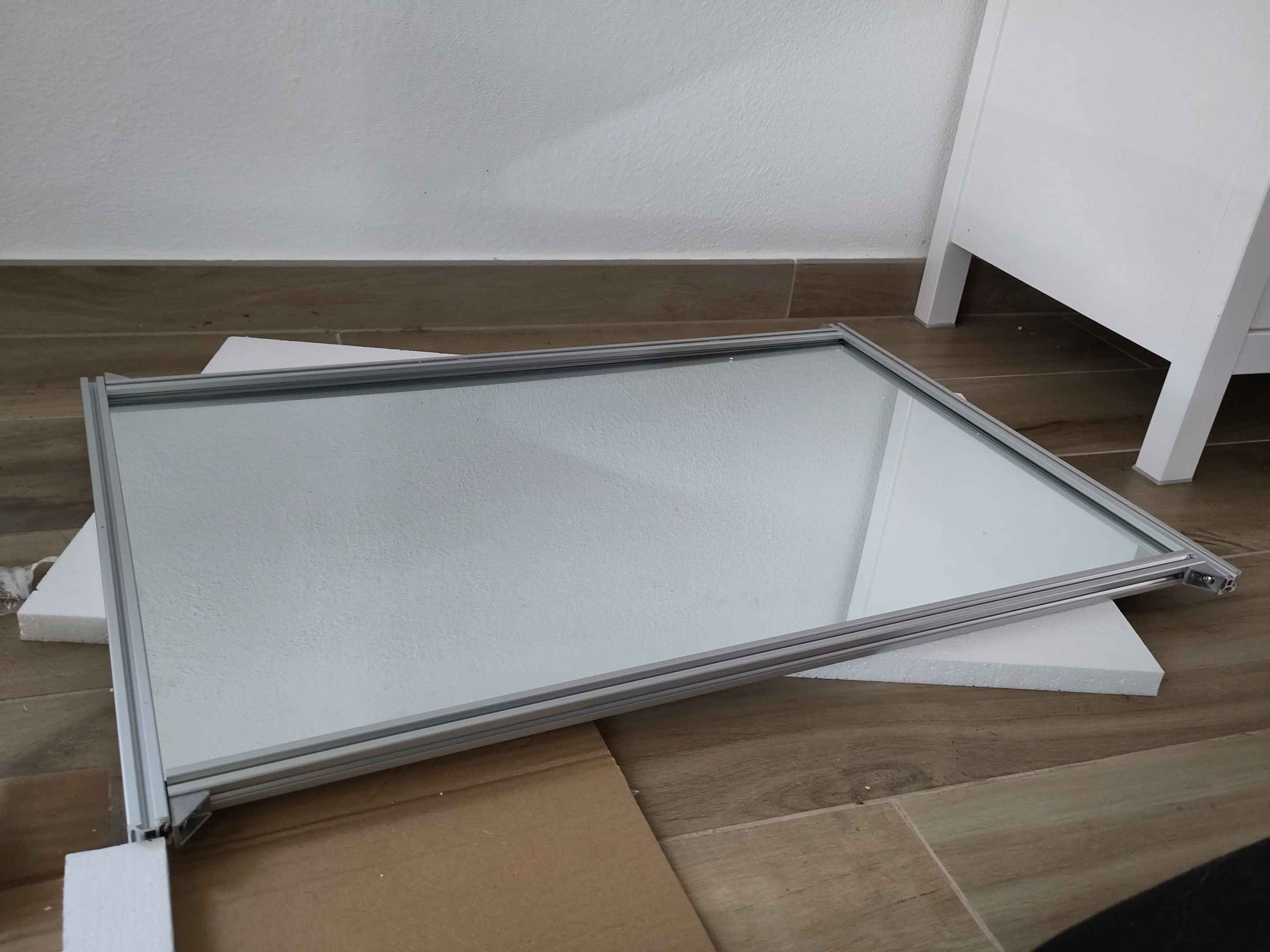 Wenn die Wohnung kleine Fenster hat und zu dunkel ist, denken viele vermutlich daran, entweder die Fenster zu vergrößern oder umzuziehen.Es gibt jedoch noch eine dritte technische Möglichkeit, dass mehr Sonnenlicht in die Wohnung fällt: Man nehme einen Spiegel, montiert ihn beweglich mit zwei Motoren in Kombination mit einem Solartracker. Gesagt getan habe ich einen 80x5o0cm Spiegel gekauft. Für das Gestänge habe ich 20x20 Aluprofile (Nut 6) und für den "Mast" ein 30x30 Aluprofil gewählt. Die Maße lauten wie folgend: