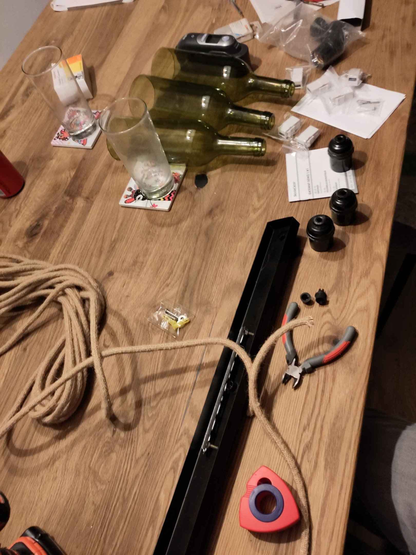 Ich habe mich entschieden, eine einzigartige Lampe aus recycelten Weinflaschen zu basteln. Hier ist, wie ich vorgegangen bin: